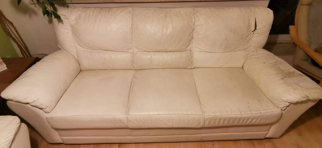 Daruji za odvoz koženou sedačku světlé barvy. V oblasti levého opěradla defekt viz foto.