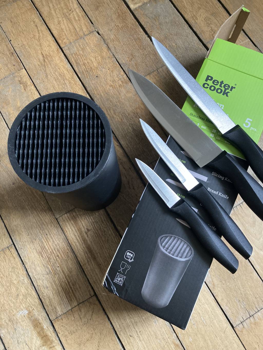 Sada čtyř nožů se stojanem-nové nepoužité.