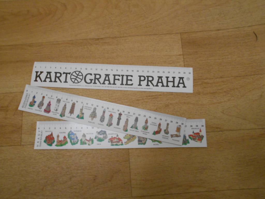 3x papírová pravítka s obrázky hradů a zámků.