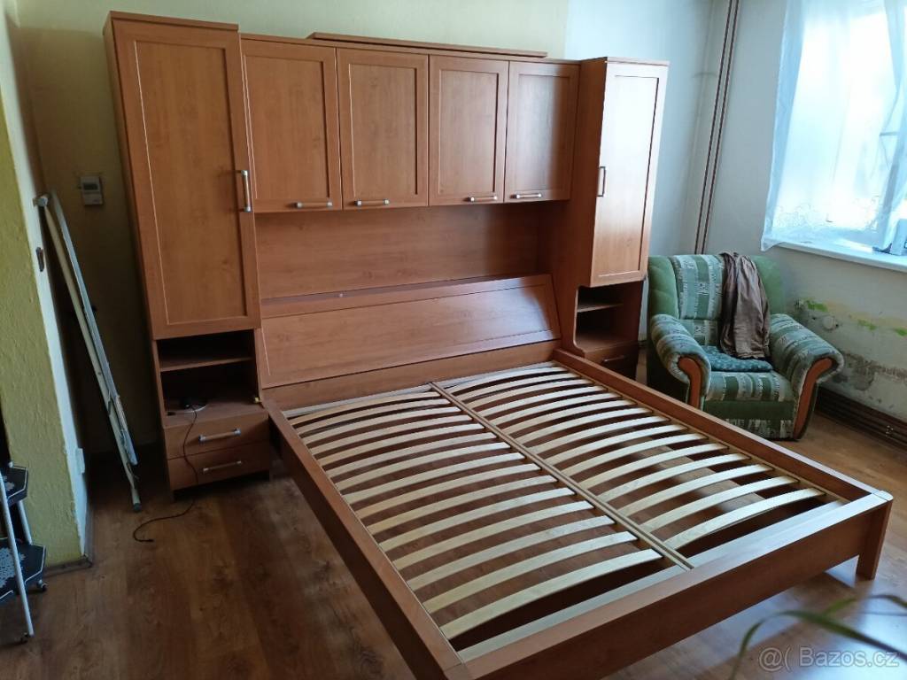 Daruji za odvoz postel se stenou a uloznym prostorem, rozmery postele s-194, d-206cm, celek ma rozmer s-287 a d-240, vyska 206cm, prodej vcetne rostu, nutna vlastni demontaz a odvoz,