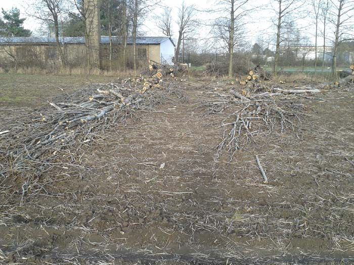 Daruji větve z 10 vysokých topolů ke štěpkování.