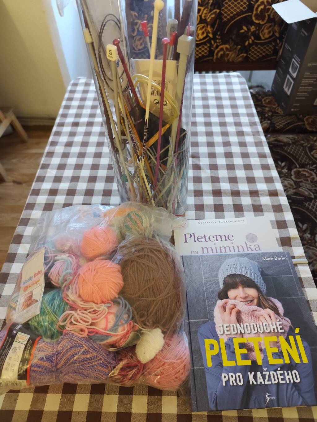 Daruji za odvoz pletací jehlice, příze na pletení a knížky s návodem na pletení snad se někomu mohou hodit.