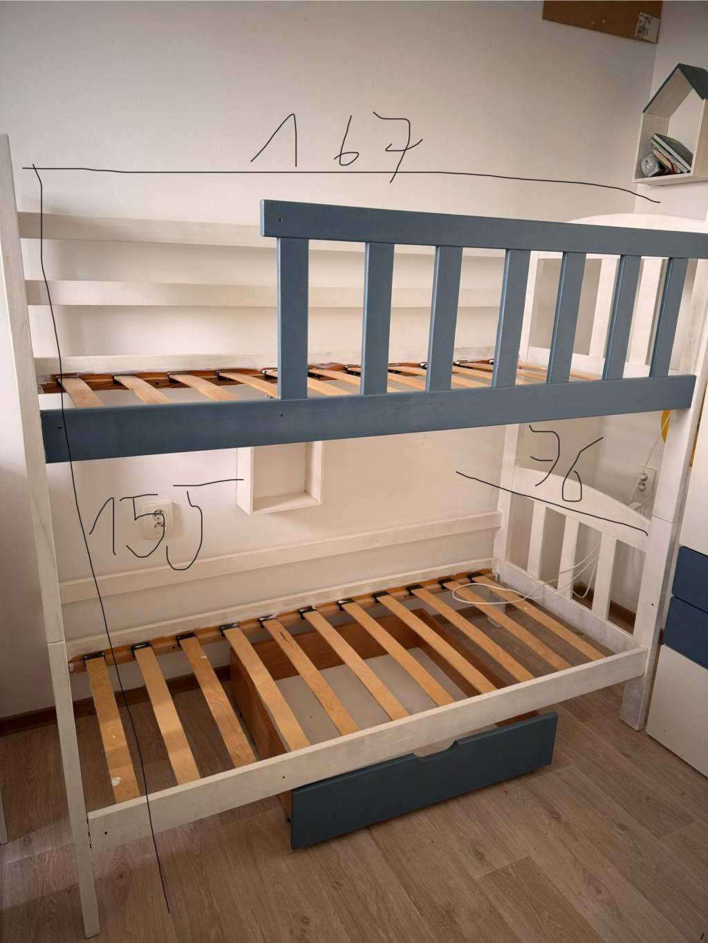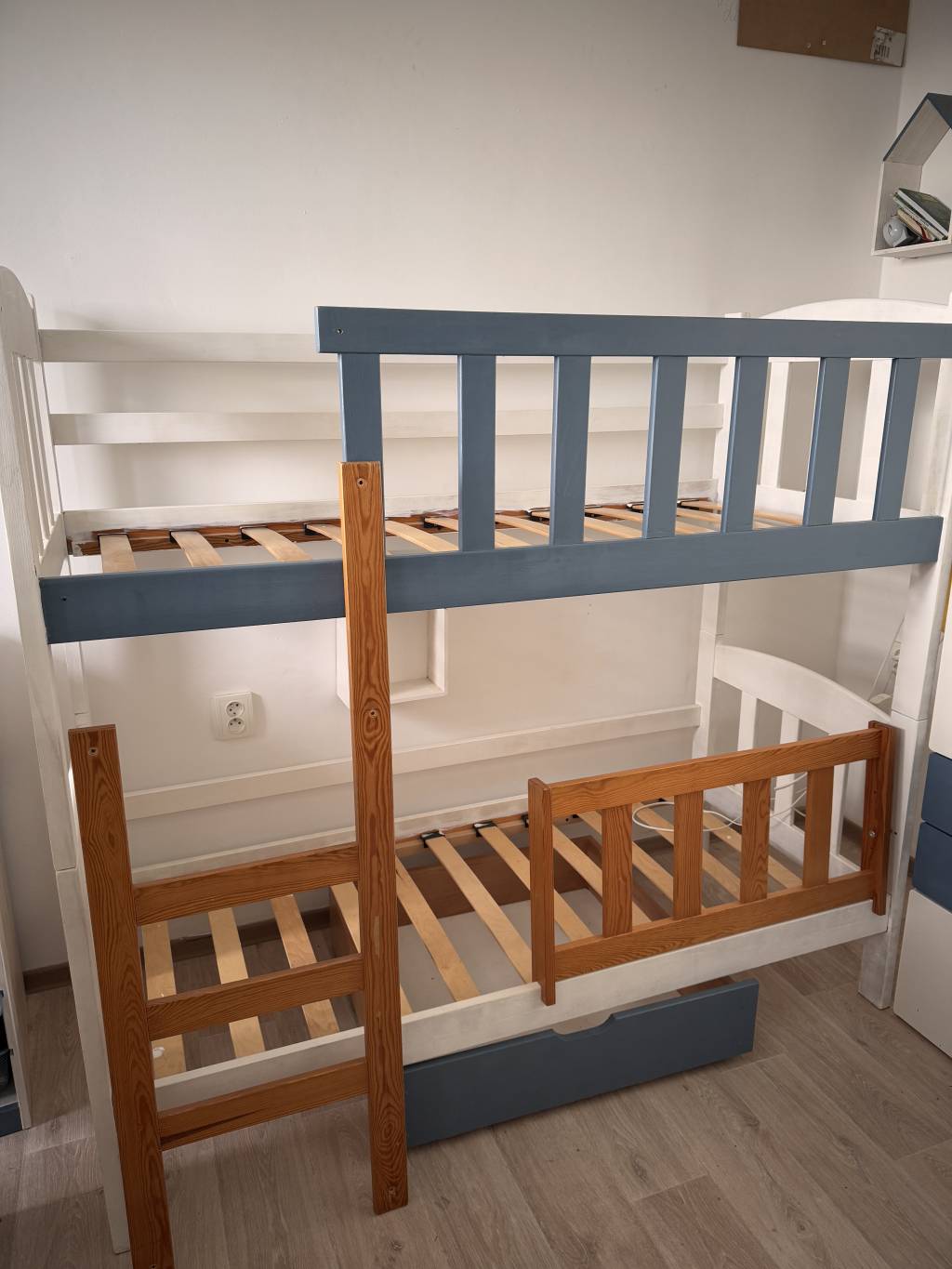 Daruji za odvoz palandu,zmensena verze na matrace 160x70 cm. Vc rostu a jednoho supliku. Mez matraci. Je natrena kridovymi barvami,schudky a zabrana natrene nejsou,posledni rok jsme nepouzivali. Nutne sneseni ze 3.patra bez vytahu. Dam zajemci,ktery prijede jako prvni.