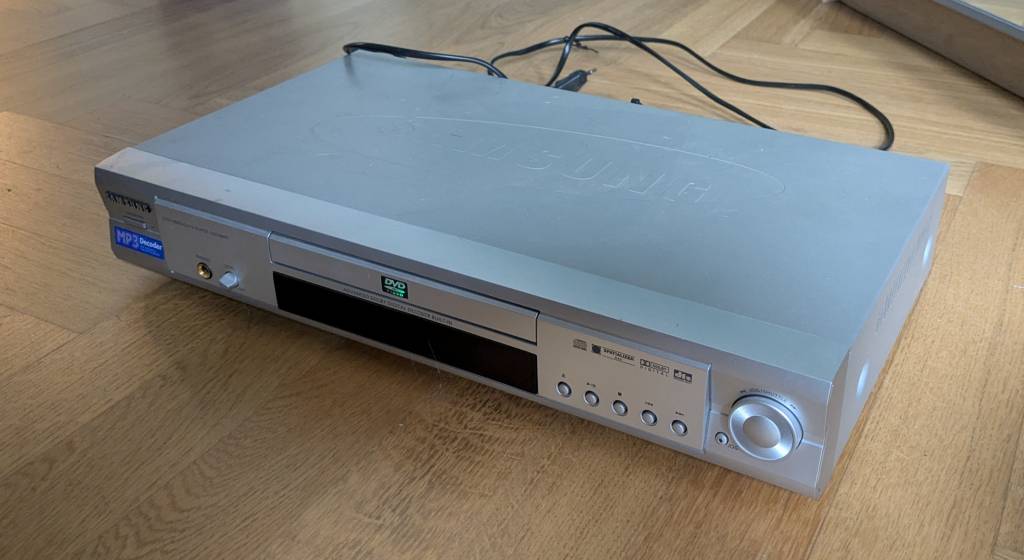 Daruji za odvoz DVD přehrávač Samsung. Měl by fungovat, ale nemám možnost vyzkoušet. Včetně dálkového ovládání a SCART kabelu.
