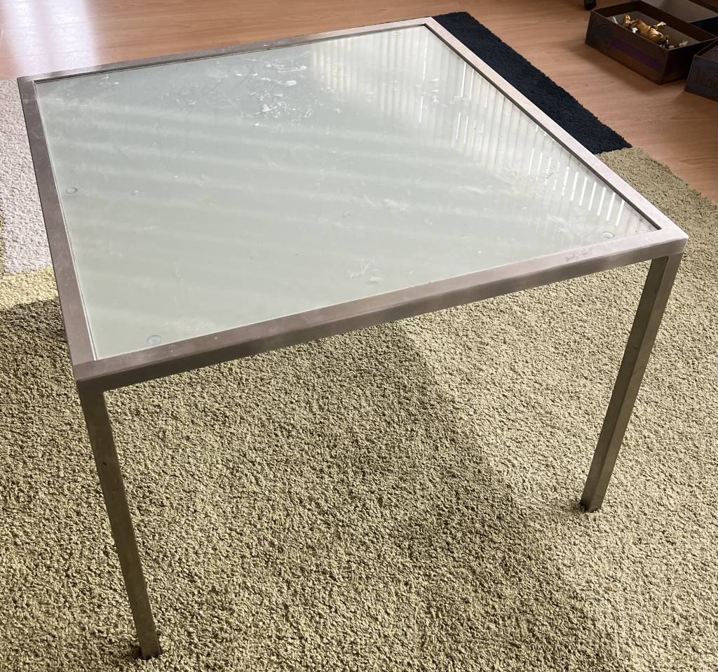 Daruji za odvoz skleneny stolek s nerezeovou konstrukci. Rozmer 60x60 a vyska 44.