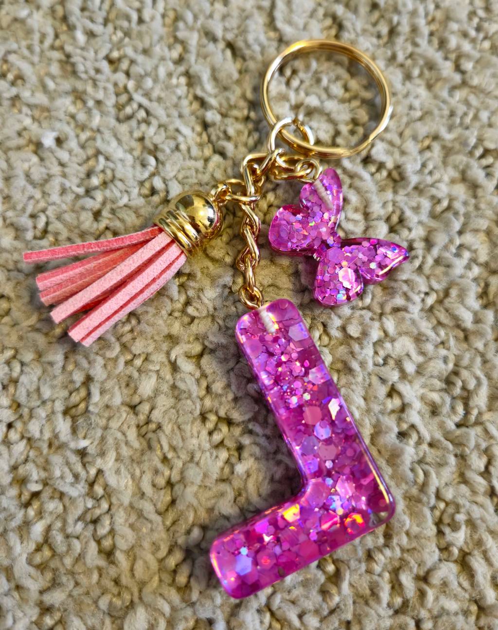 Daruji za odvoz úplně nový přívěsek s růžovými třpytkami "L", nevyužiji, nevhodný dárek.