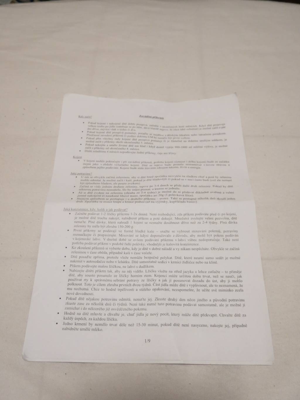 Daruji za odvoz vytištěné rady, jak začít s příkrmy a příklady jídelníčku.