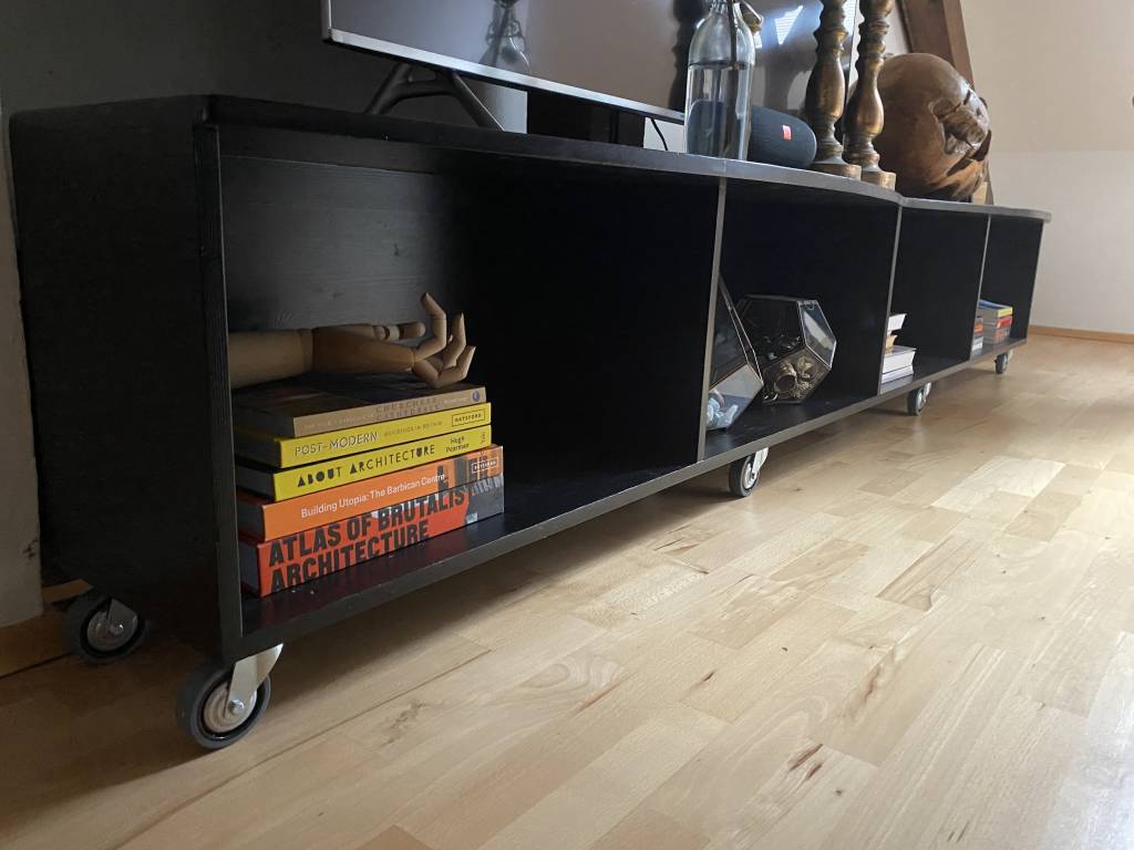 Daruji za odvoz televizní stolek - ze dřeva, nelze rozložit. Délka 280 cm.