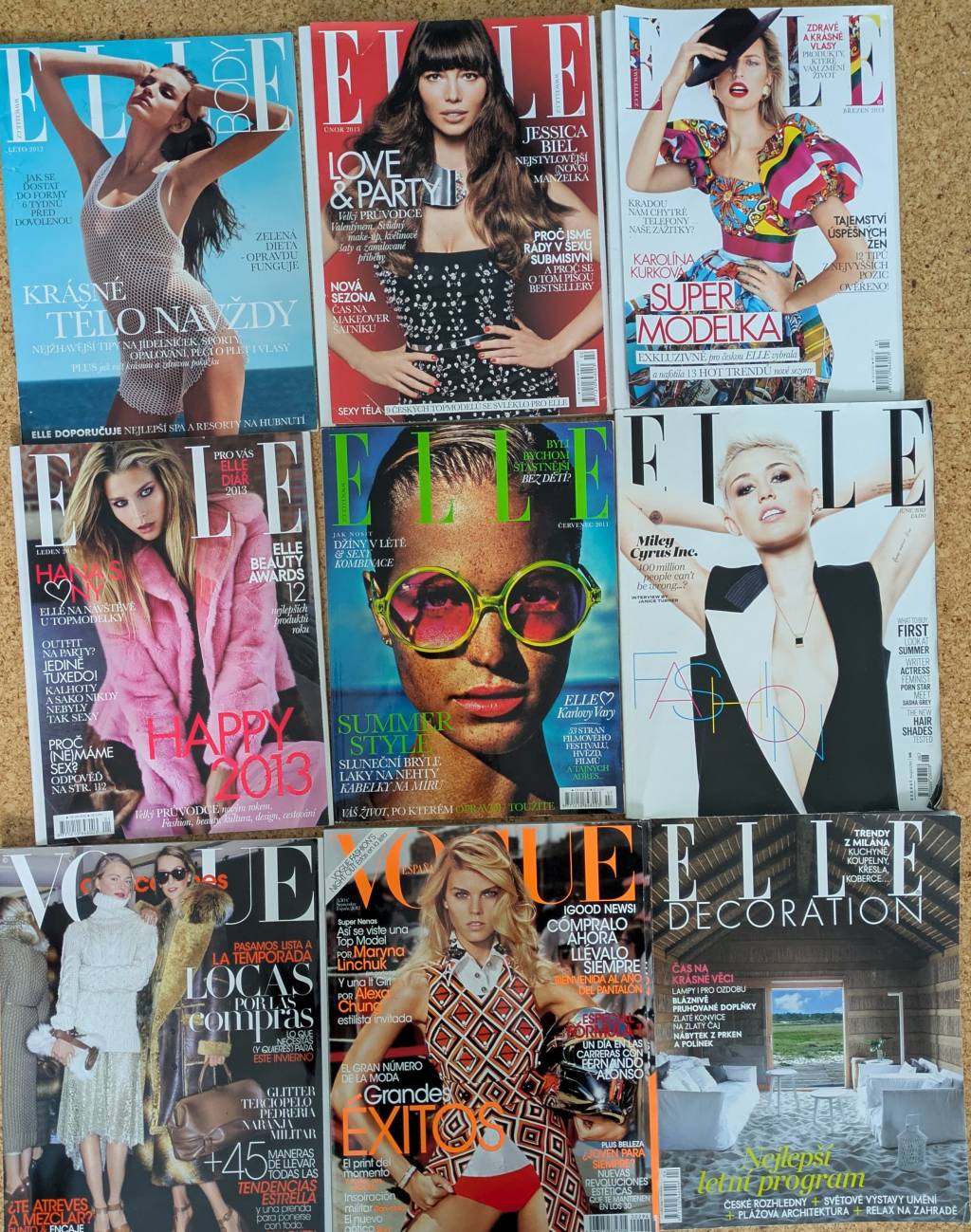 Módní časopisy (Elle CZ, EN a Vogue ES)