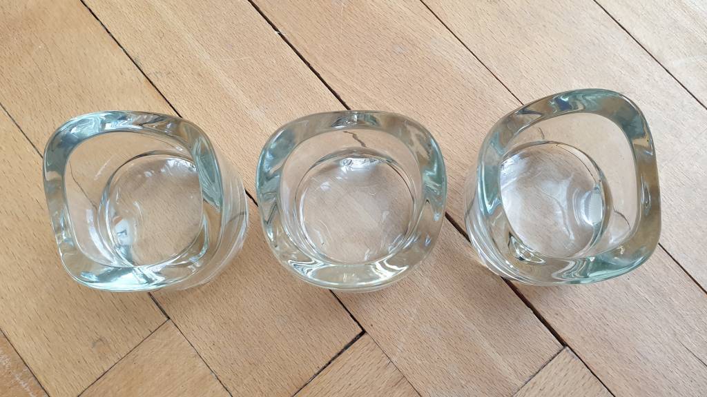 Skleněné svícny na čajové svíčky vč. 6 svíček.