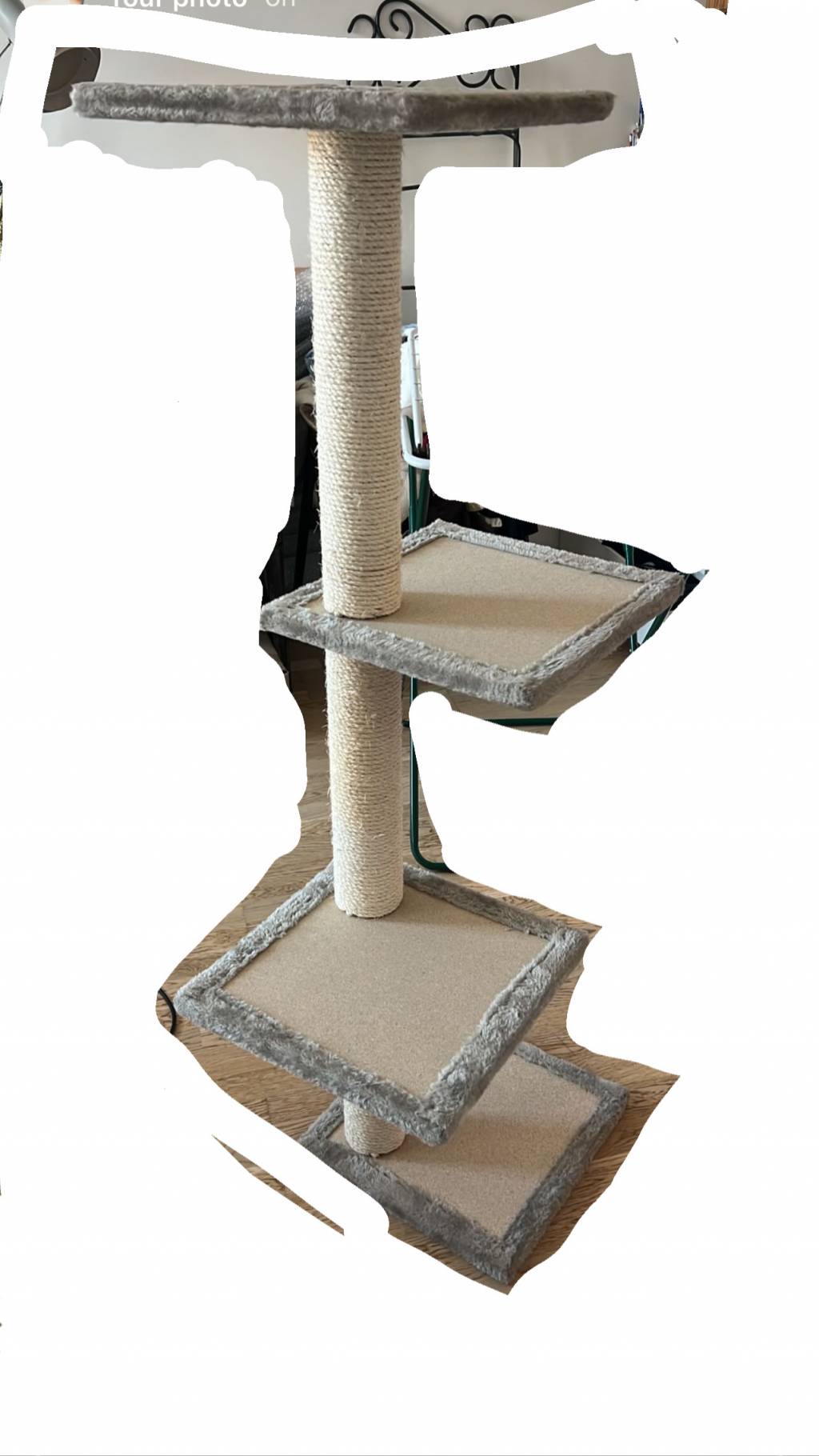 Skrabadlo na fotce je vzhuru nohama, plochy jsou cele pokryte sedym plysem jako je videt po stranach.