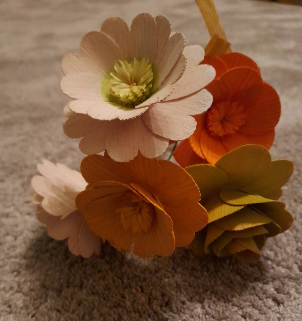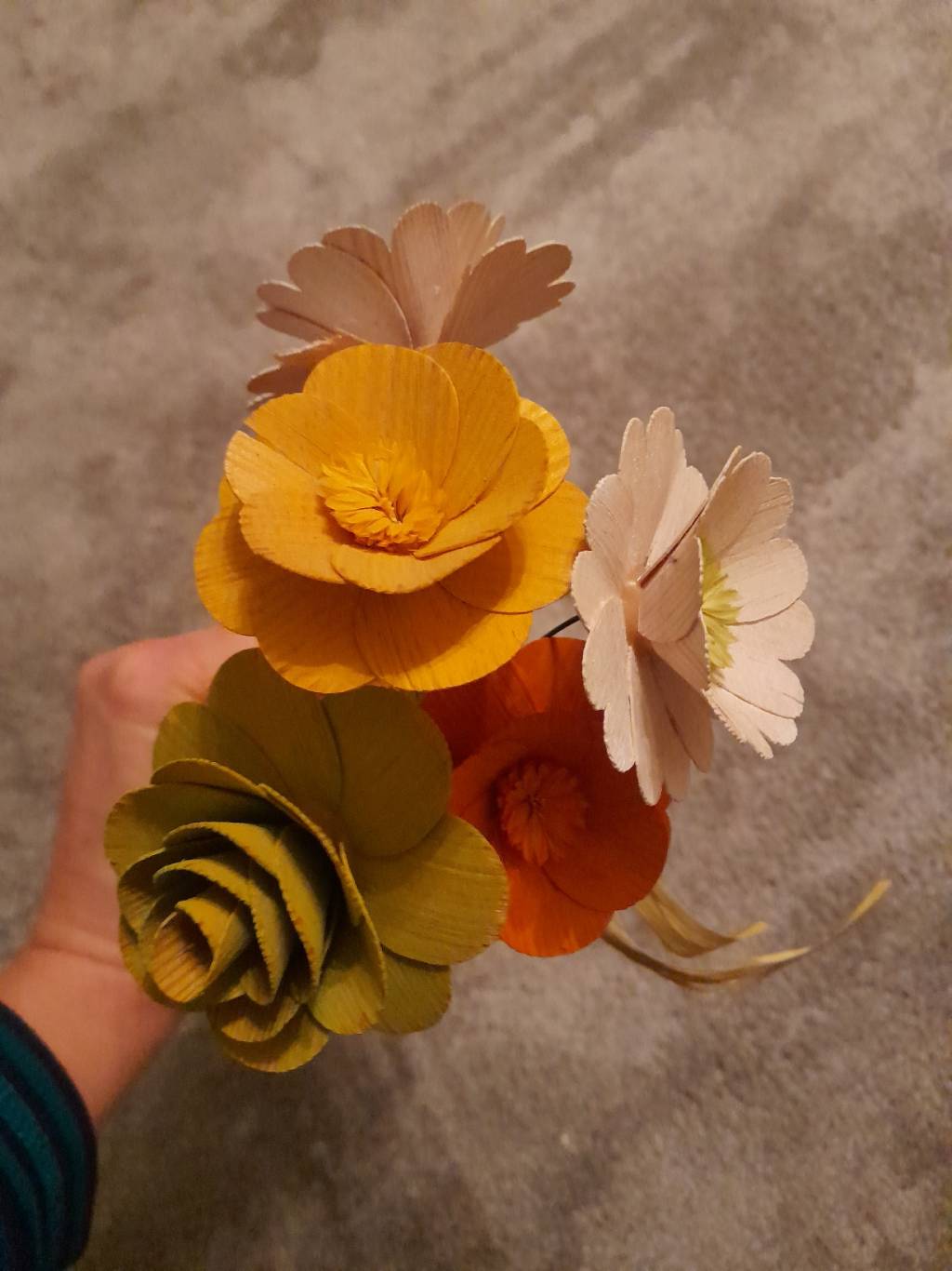 Daruji za odvoz dekorativní dřevěnou květinu, průměr květů 6,5cm.