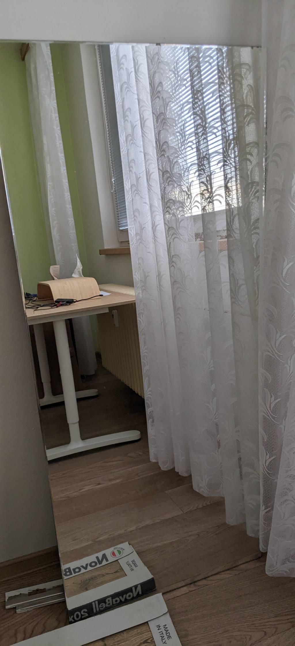 Daruji za odvoz obdélníkové zrcadlo o rozměru cca 50x150 cm. Upevnění na dvě kovové kolejničky nahoře a dole. Pouze osobní vyzvednutí v Brně - Kohoutovicích.