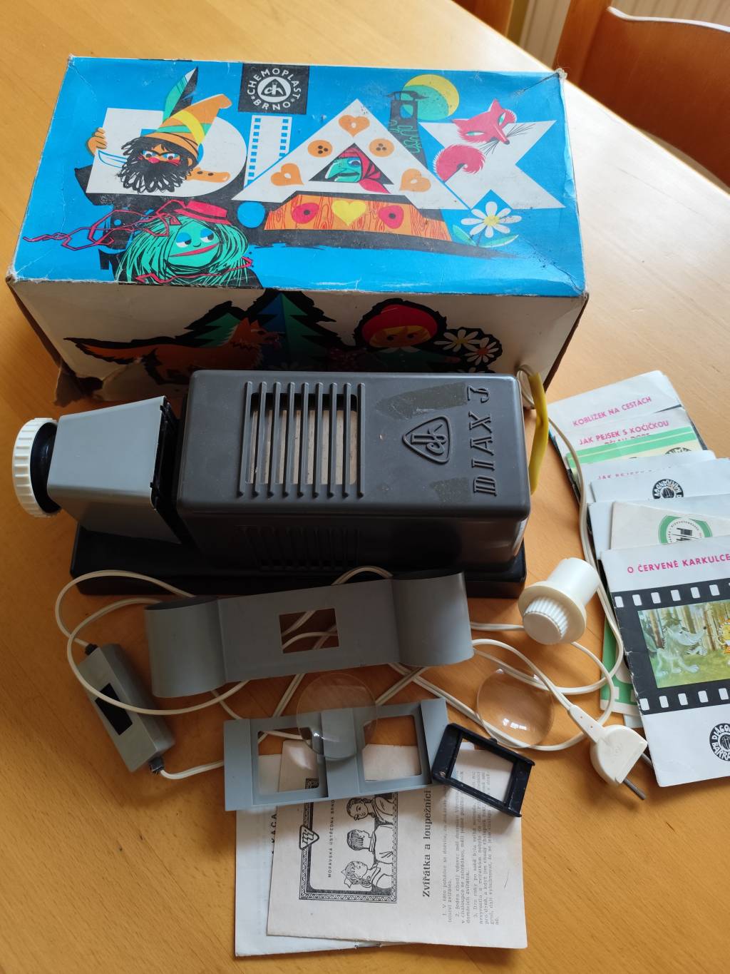 Daruji za odvoz starou funkční promítačku, včetně textu pohádek. Filmy bohužel chybí.,