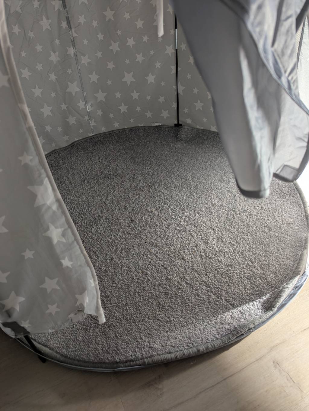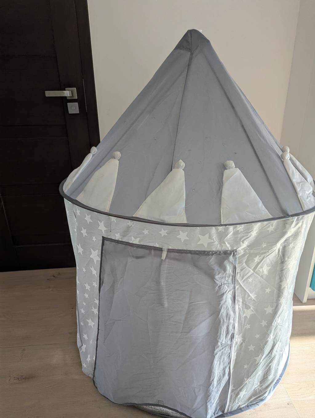 Daruji za odvoz používaný dětský hrací stan. Uvnitř je na míru střižený koberec. Ve střeše místy dírky, u vchodu odtržen kousek stěny. Ještě dobře poslouží, vhodný i na balkon/terasu/zahradu na léto.