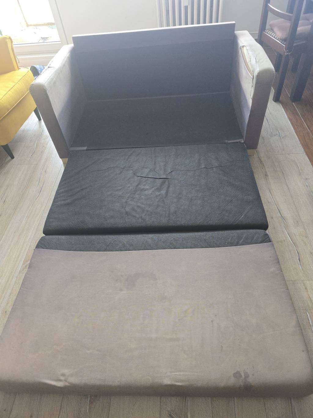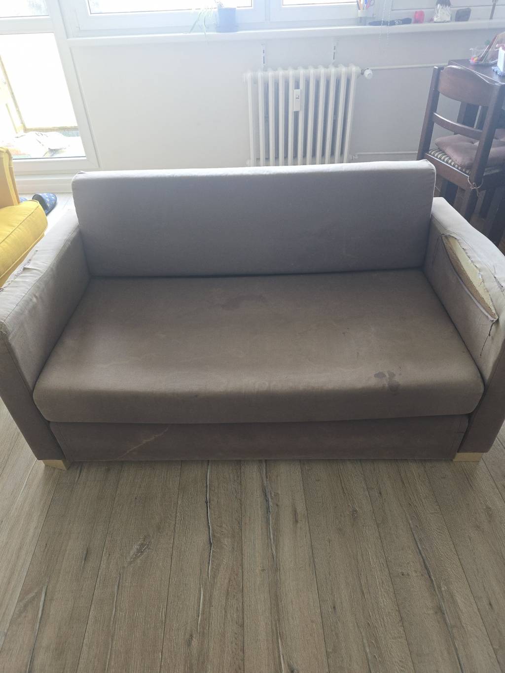 Je už celkem použitý a na rozích je potrhaná látka. Dá se to sešít, ale už se mi nechce. Do garáže nebo na chatu může být ještě dobrý.