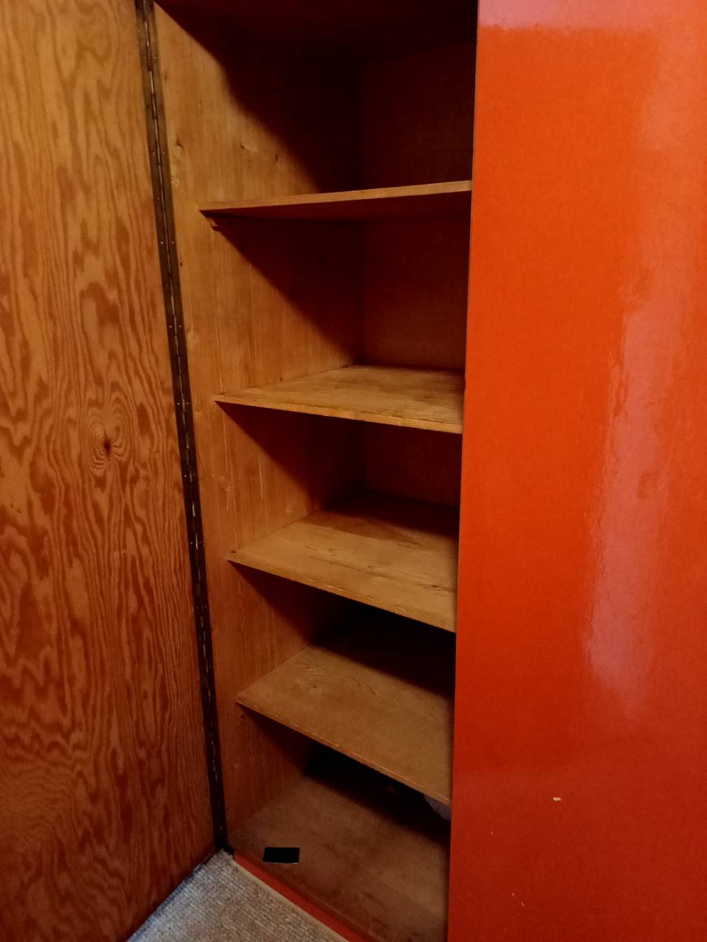 Šířka 180 cm, výška 176 cm, hloubka 59 cm. Ovoce či jiné přebytky potěší, není však podmínkou darování. Je v 1. patře, můžete si ji na místě i rozebrat, např. na materiál pro truhláře či jiné účely
