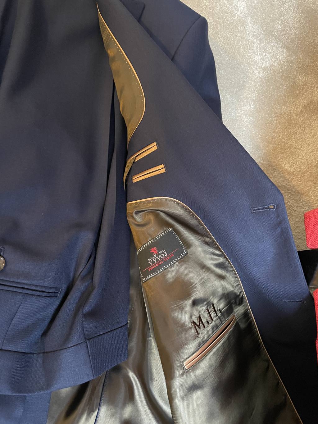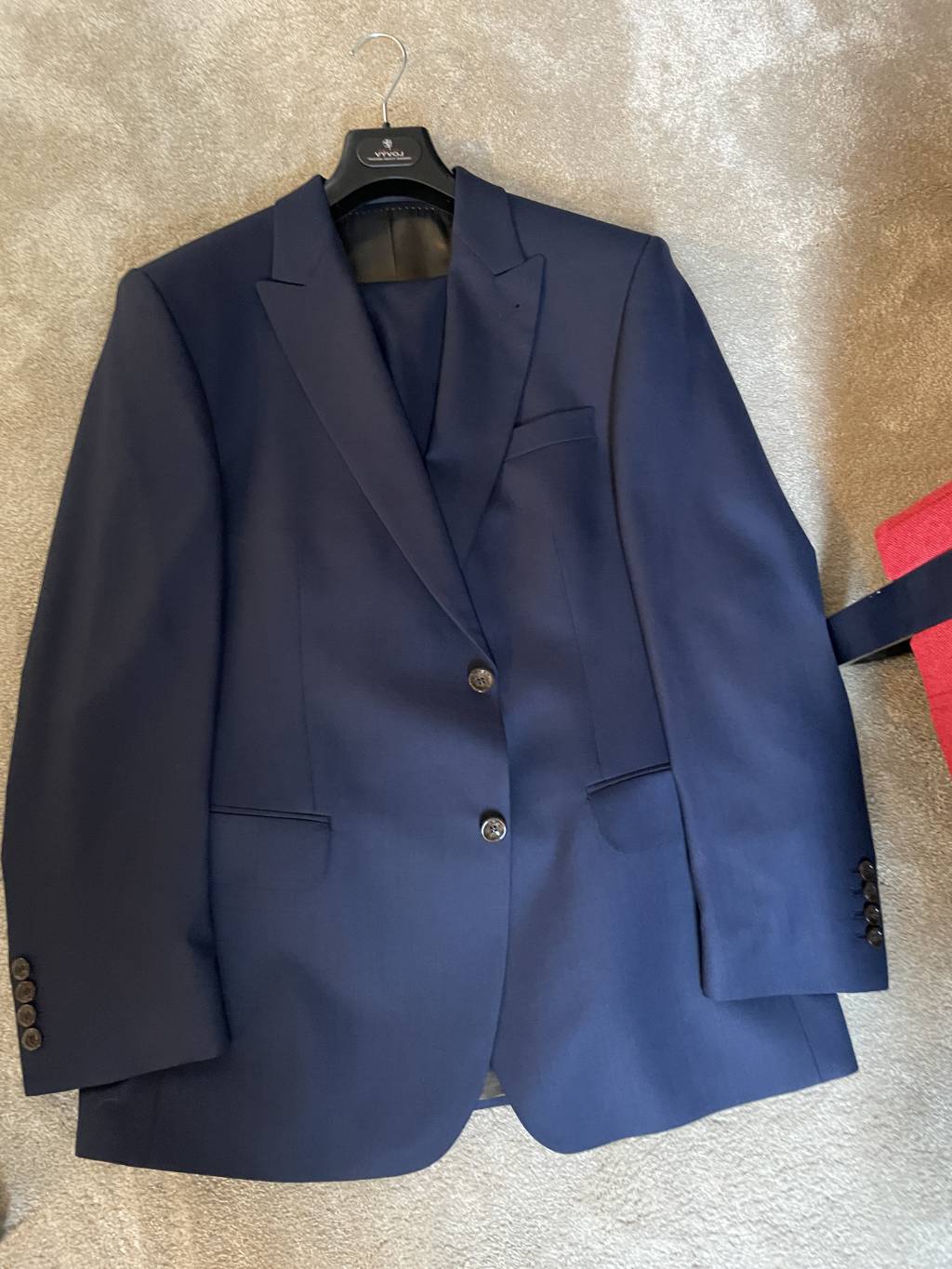 Je dělaný na muže cca 180-190 cm, 85-95 kg. Je to kvalitní britská vlna, se dvěma košilemi na stejné míry.