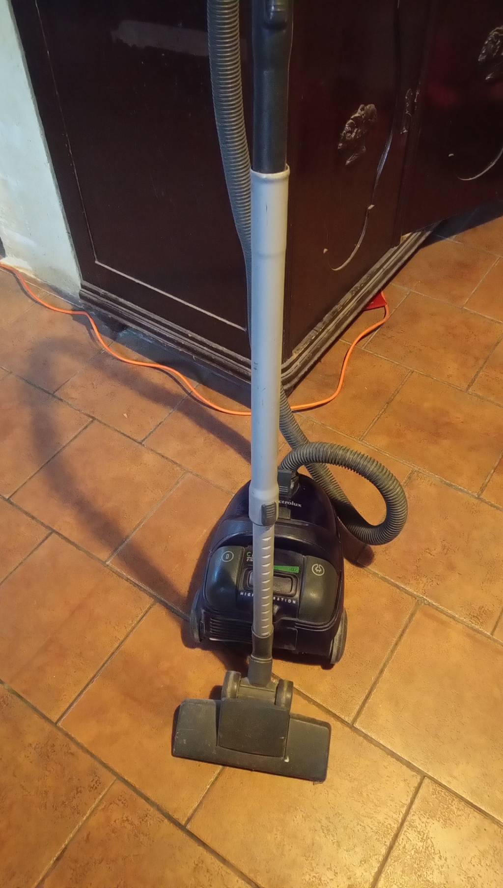 Dlouho nevyužitý, nutno koupit filtry a sáčky, vyčistit, nenašel jsem úzkou hubici. Jinak vše funguje - regulace tahu, navíjení kabelu teleskolická trubka. Myslím, že ještě může sloužit,ale je na něm vidět používání. Předání Praha 8, Karlín, nebo CHodouň okr. Beroun