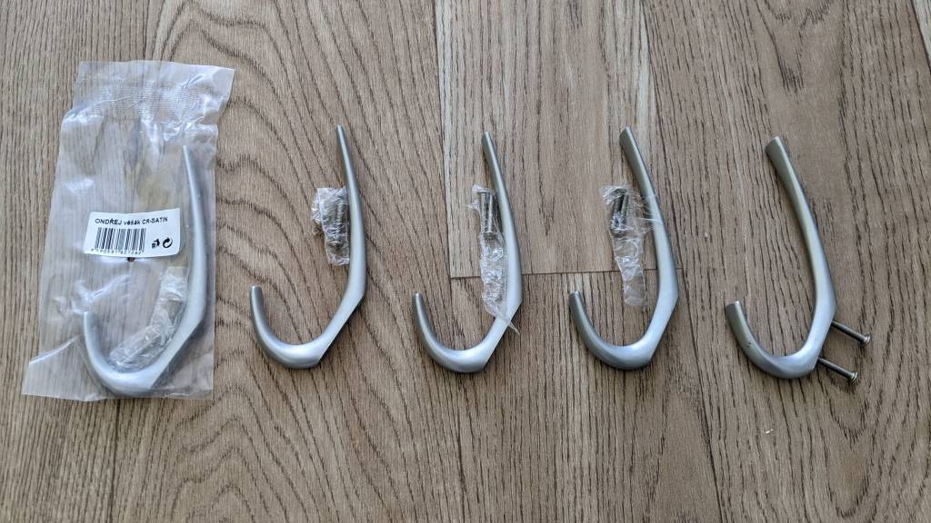 Daruji za odvoz 5 věšáků typu Ondřej satin chrom kompletní i se šrouby na uchycení do nábytku/dřevěné desky. Pouze osobní vyzvednutí v Brně-Kohoutovicích.