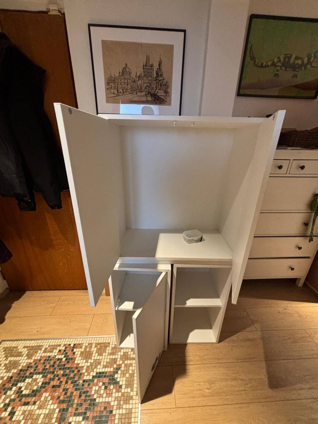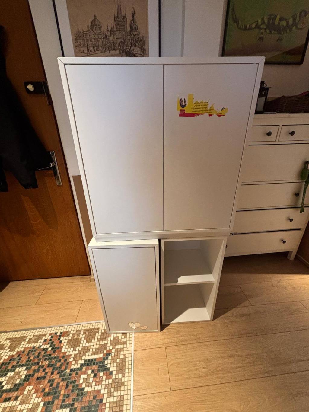 Daruji 3 ks skříní/polic ze systému EKET Ikea. Dobrý stav, pouze polepeno samolepkami, které ale lze odstranit myslím si beze stopy. Rozměry: skříň 1 - hloubka 35cm, šířka a výška 70cm, skříň 2 a 3 - hloubka 35cm, šířka 35cm a výška 70cm. Vyzvednutí na Praha 6 - Suchdol