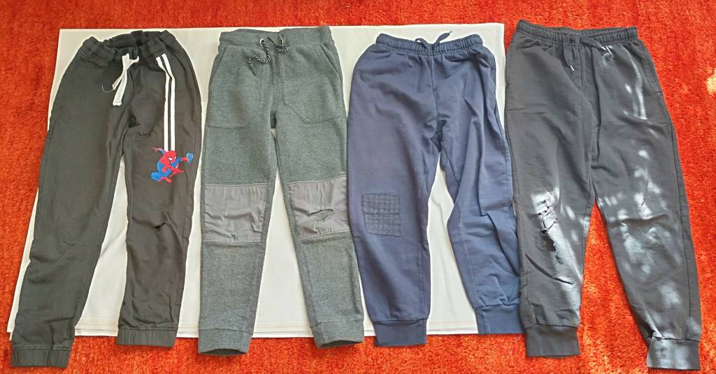 Daruji za odvoz viz foto - tepláky mají vždy na levém koleni díru, příp. na obou. Je mi líto vhodit do kontíku na textil, protože se dají ještě zpracovat, zbylá bavlna je pořád dobrá.
