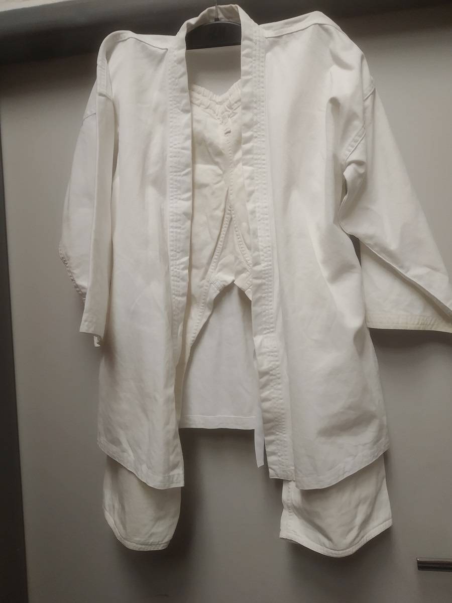 Daruji za odvoz bílé sportovní kimono dle foto. Bez pásku. Vel. XS. Materiál 100% bavlna.