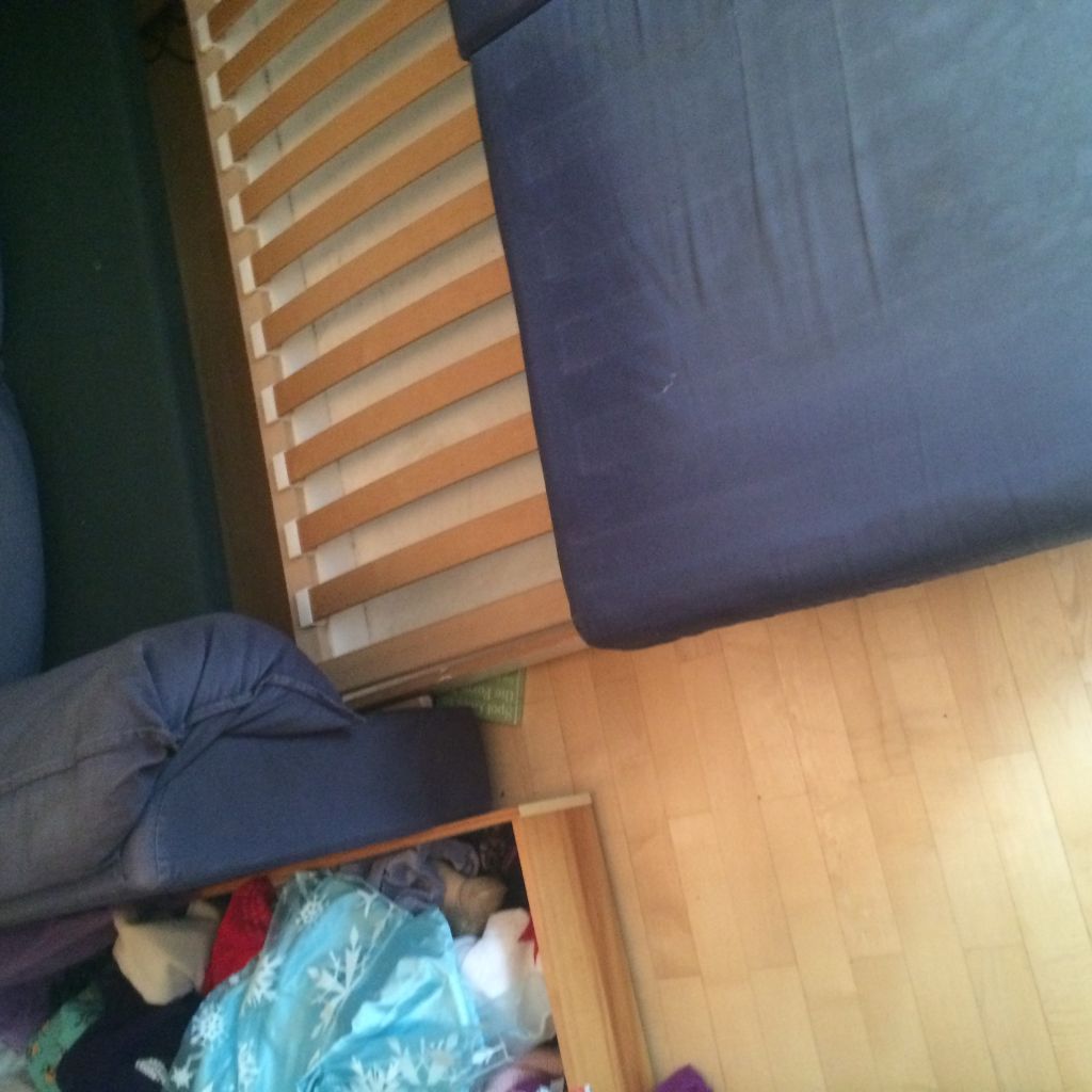 IKEA rozkládací pohovka, hodně používaná, ale stále funkční, nutno buď vyčistit či s přehozem lez používat bez problémů.