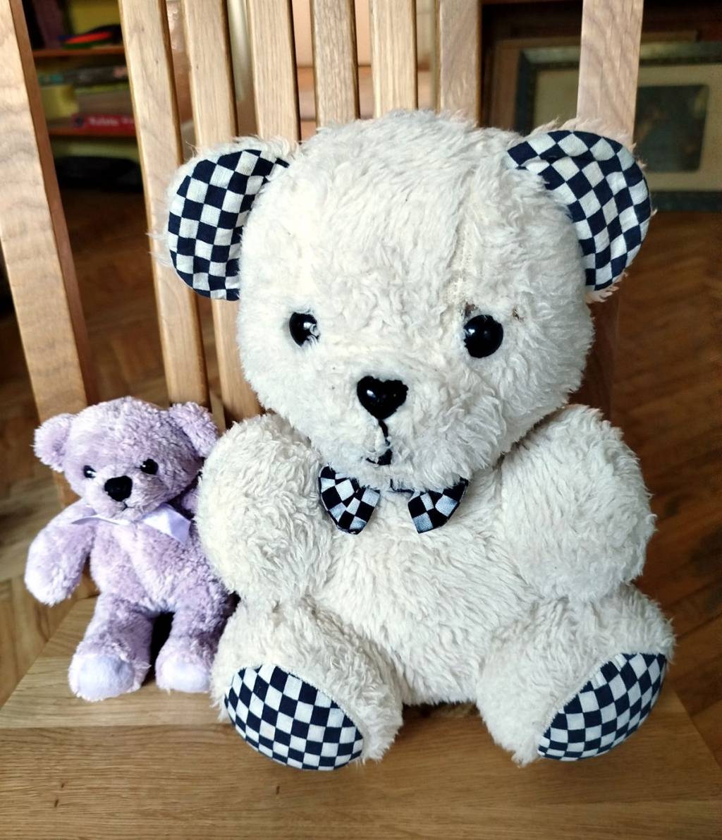Daruji za odvoz dva medvědy v perfektním stavu. Výšky: 30 cm, 15 cm.