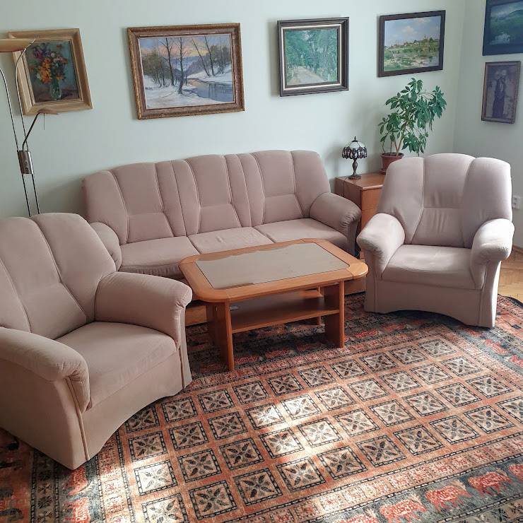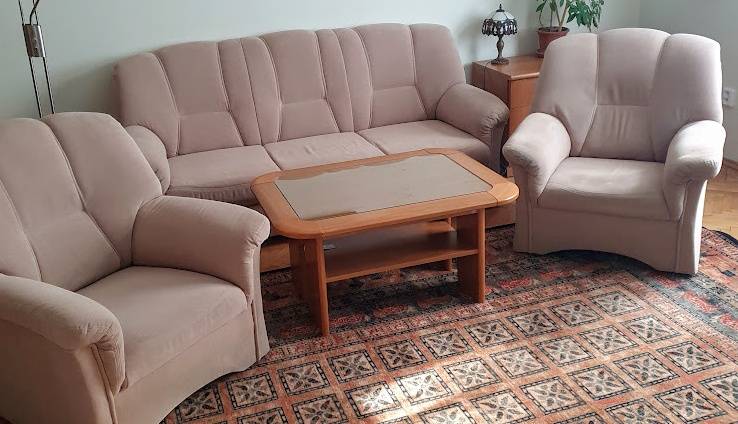 Daruji za odvoz sedací soupravu 3+1+1 (rozkládací gauč, dvě křesla) ve velmi dobrém stavu. Barva béžová, na fotkách zkreslená světlem, lépe odpovídá na detailu křesla. Nutné vlastní odnesení (2.patro) a odvoz z Litoměřic. Spěchá