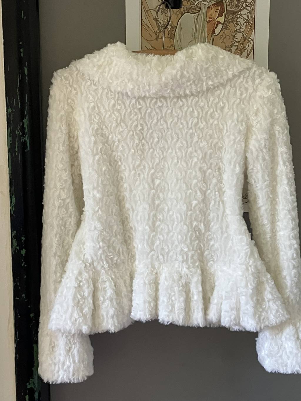 rada bych udelala radost timto koziskem. Mekoucky, elegantni, dela moc hezkou zenskou siluetu. Mela jsem ho jen jednou na plese, ale uz ho nevynosim. Vel. M, polyester.