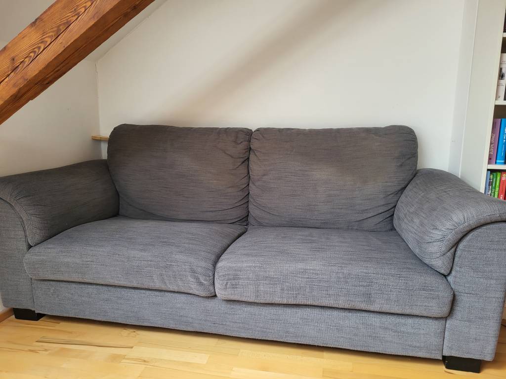 Daruji za odvoz pohovku z IKEA, stáří cca 10 let. Je používaná, ale stále dobře poslouží. Konstrukce je v pořádku, potah nese známky používání, šířka 225 cm,