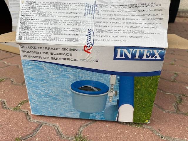 Daruji za odvoz skimmer Intex, už má pouze držák na trubkový bazén, ne na ten s měkkým límcem. Normálně plně funkční, na novém bazénu nám nedrží :-( Hadice má standardní průměr na bazény Marimex/Intex.
