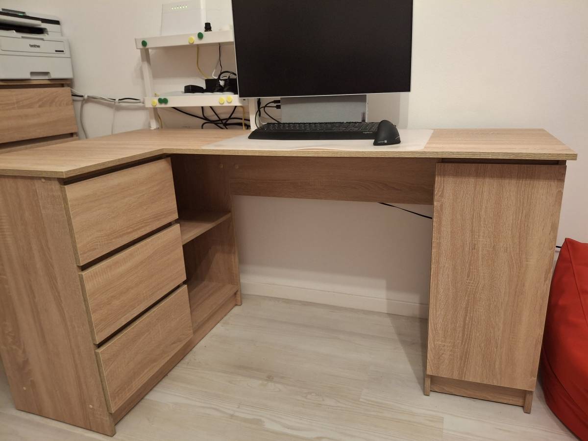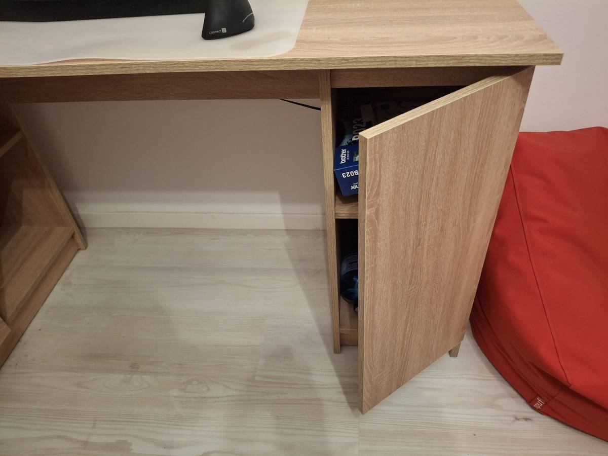Daruji za odvoz psací stůl, zachovalý, vzor dub sonoma. Tři šuplíky, dvě otevřené police a dvě zavřené police. Rozměry viz obrázek. Potřebuji odvézt v úterý nebo ve středu večer. V případě zájmu napište prosím do zprávy kdy můžete stůl odvézt.