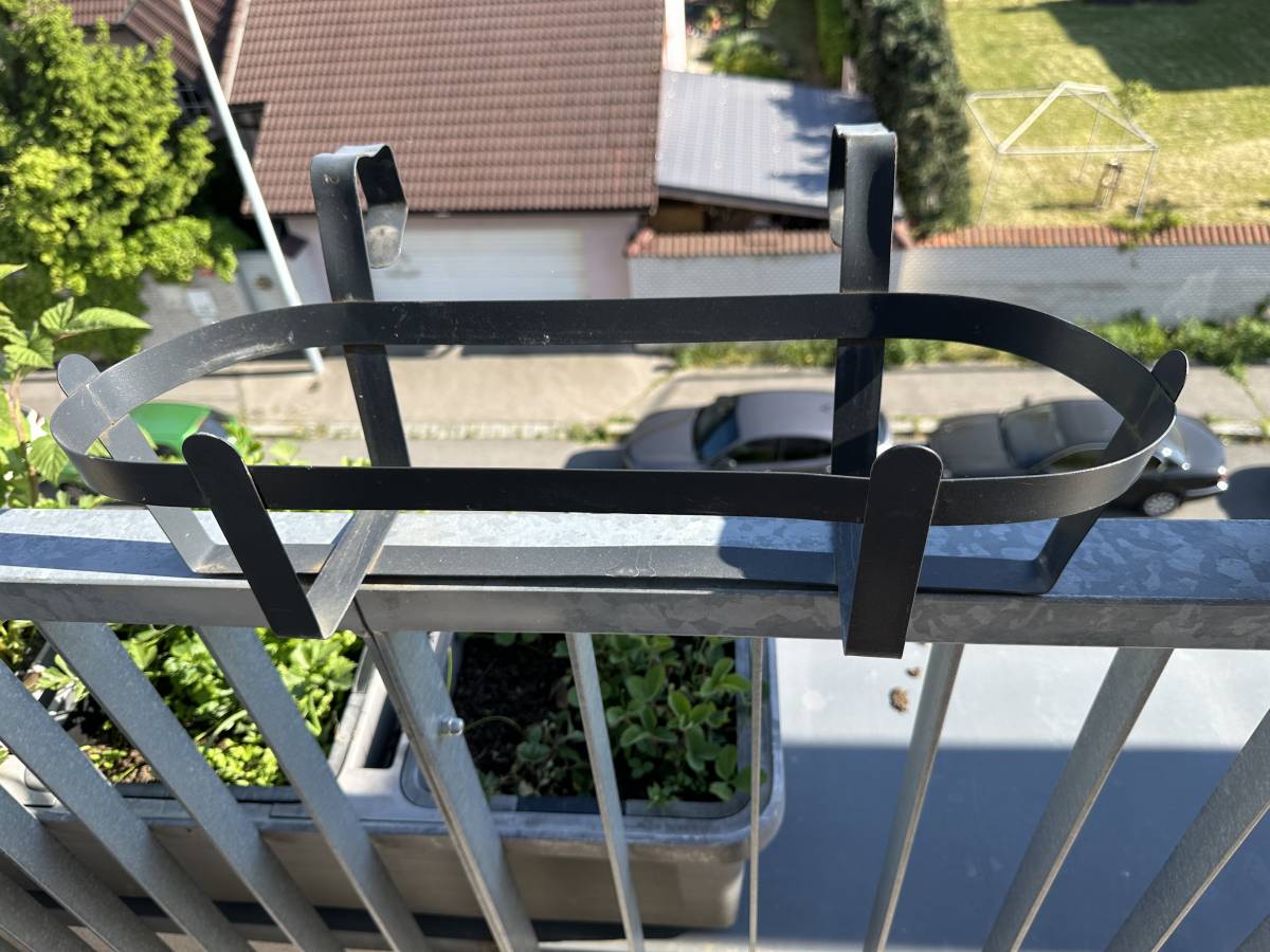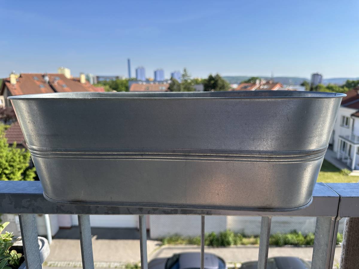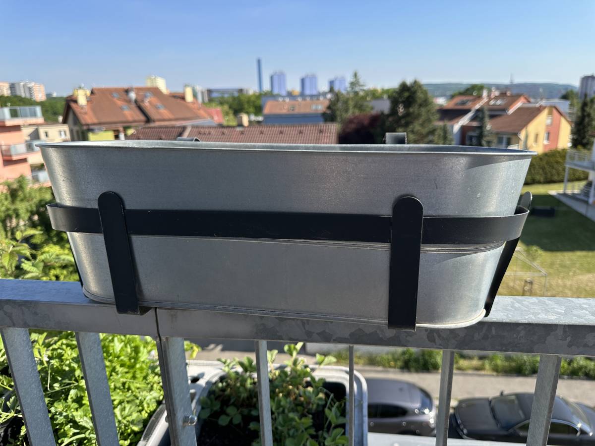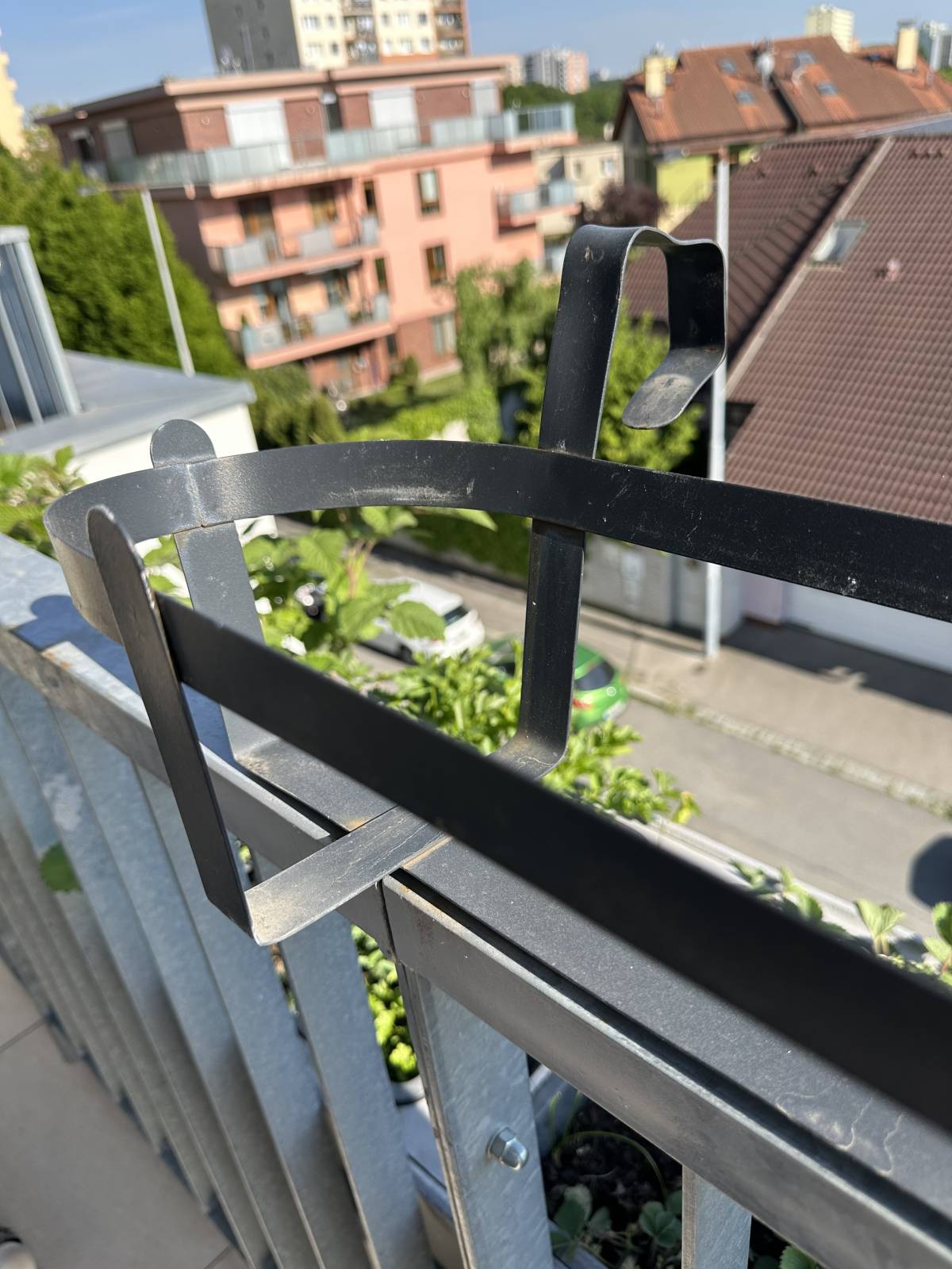 Daruji za odvoz kovový balkónový květináč s držákem.