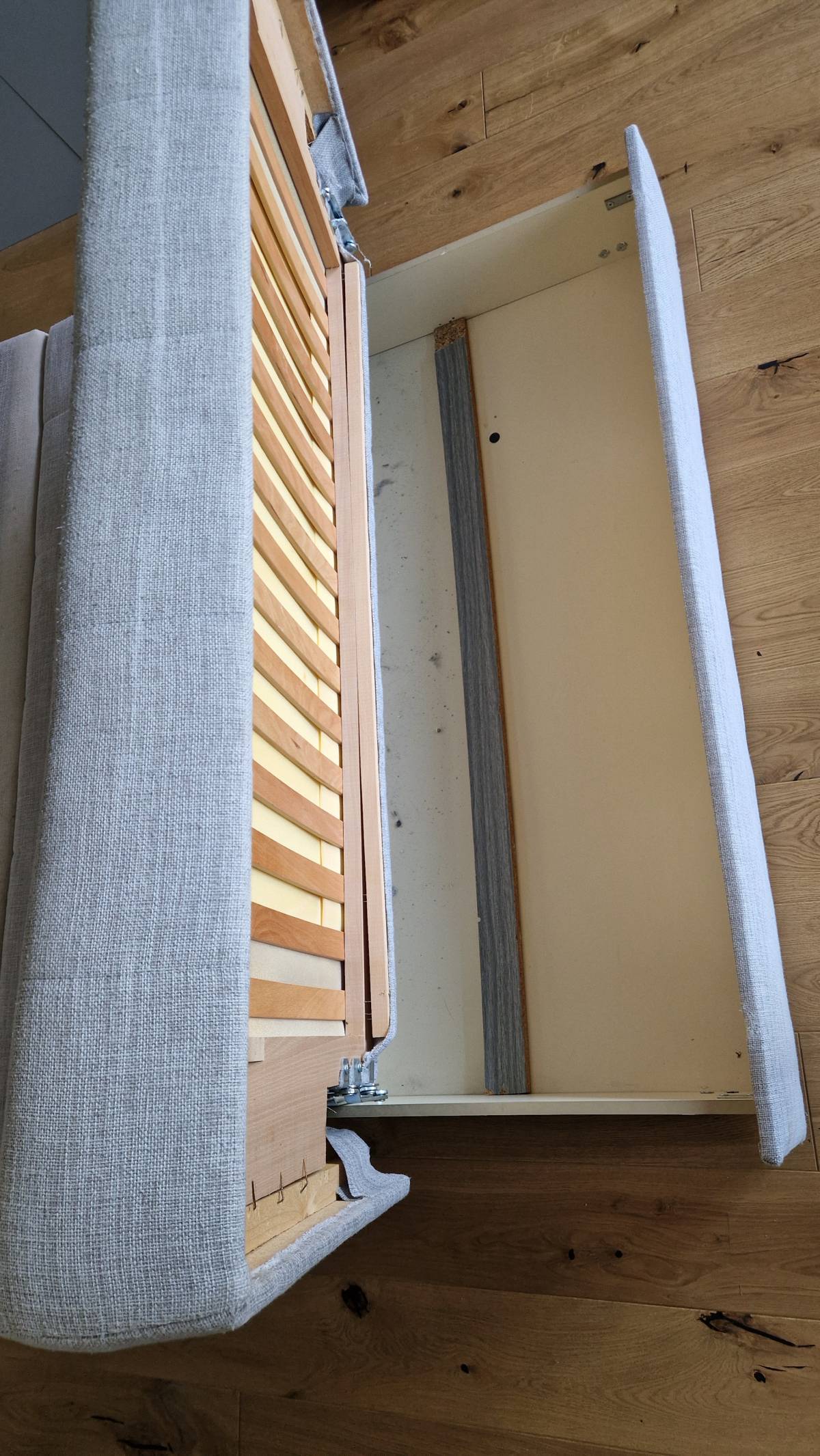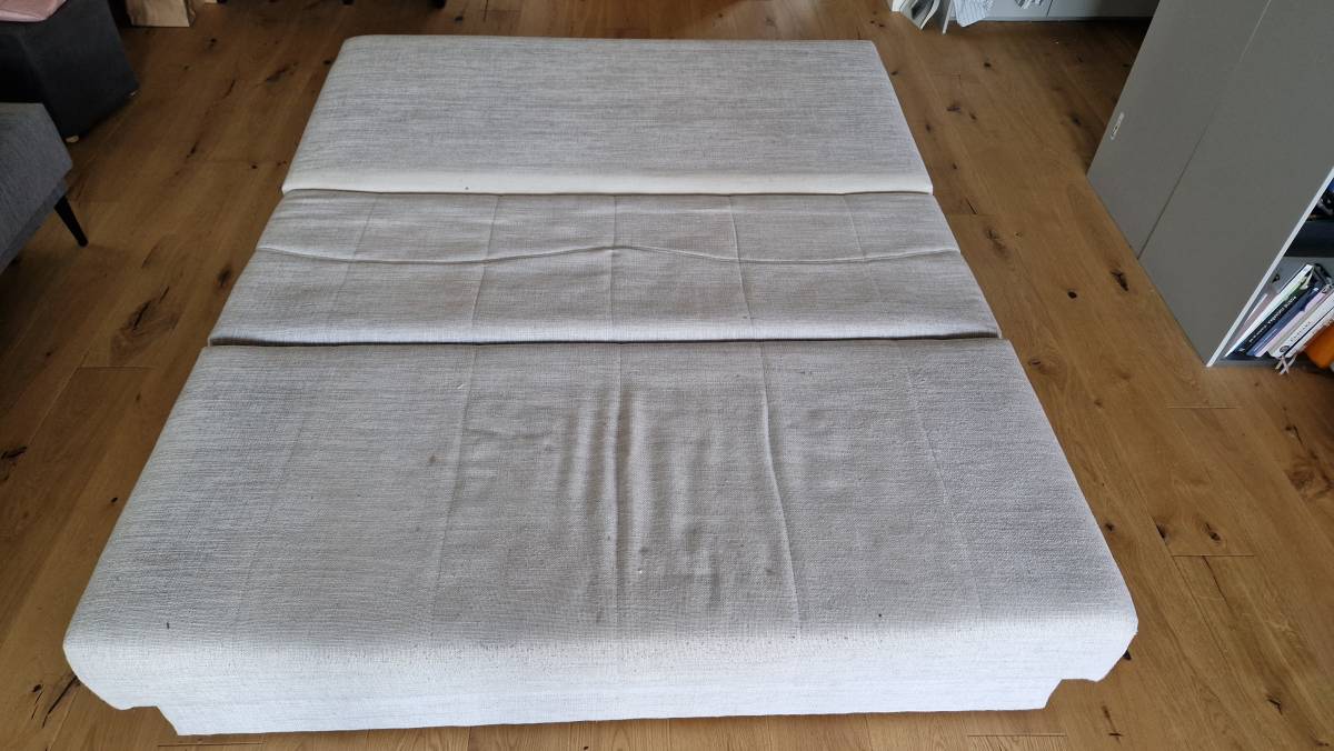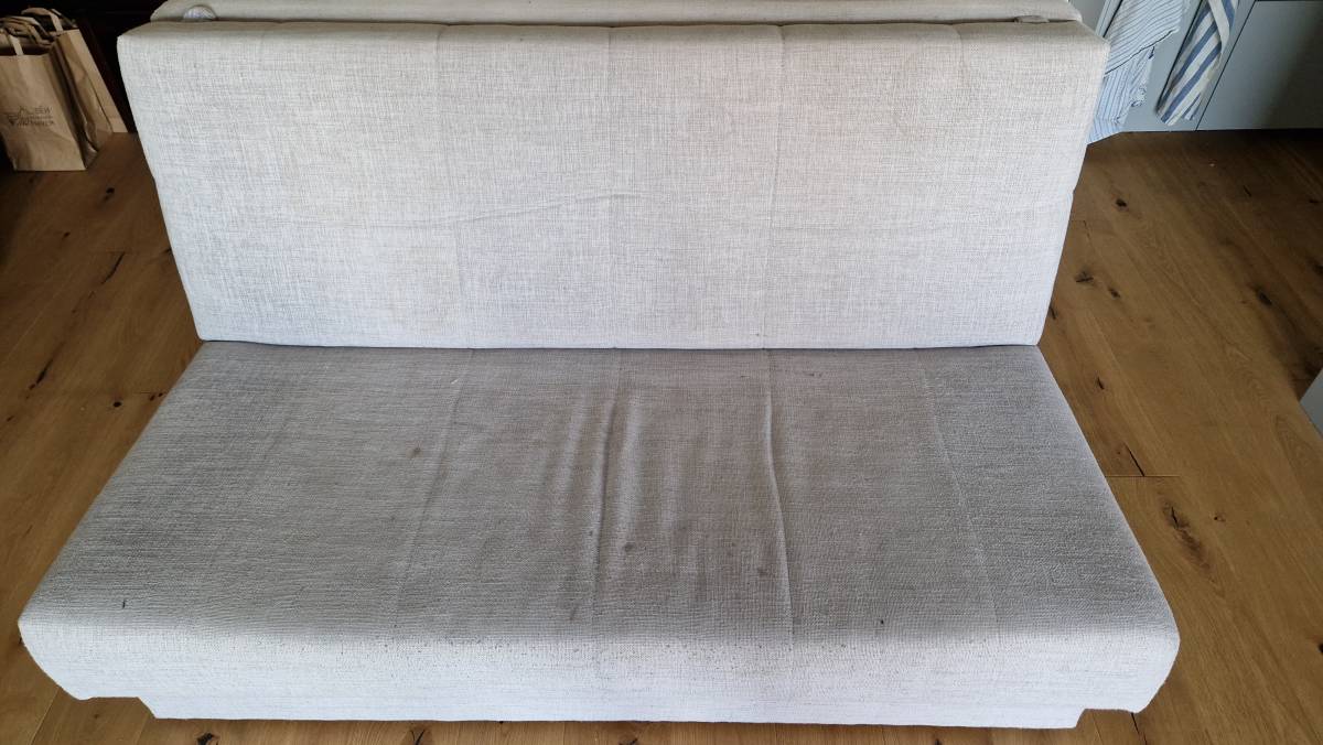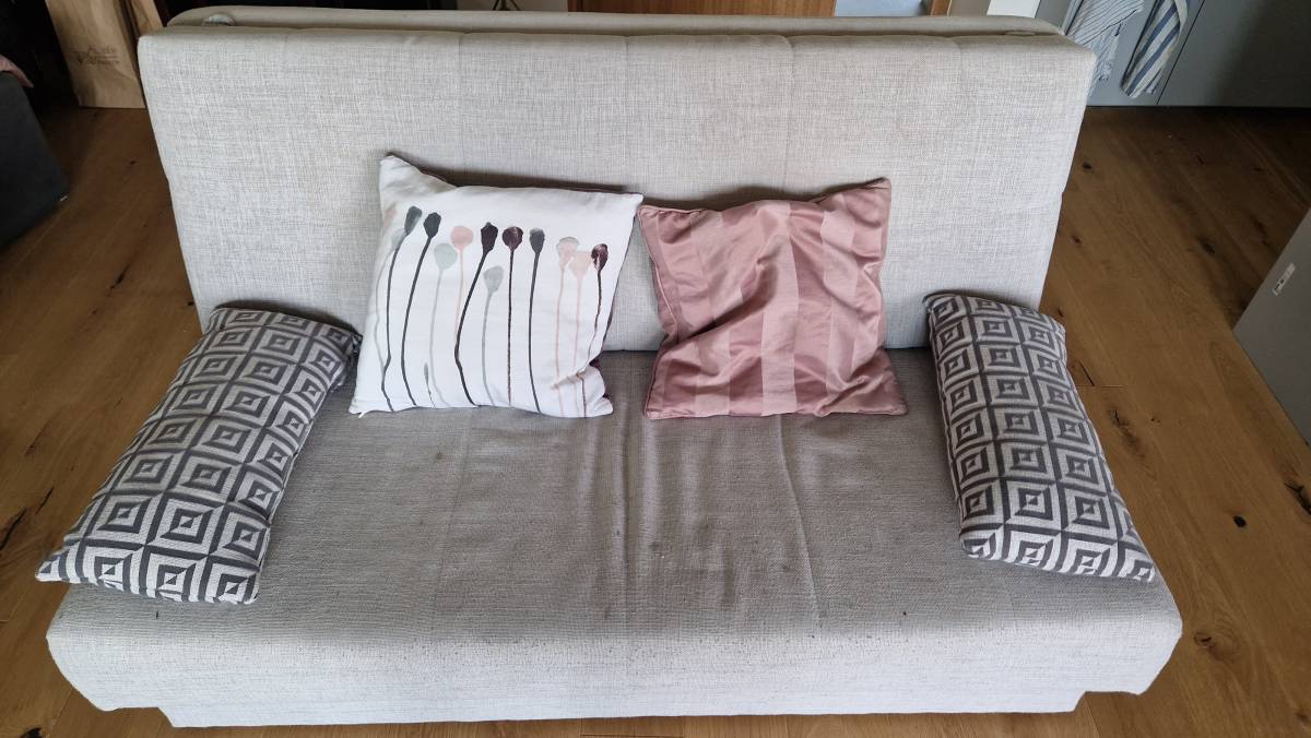 Daruji za odvoz rozkladací pohovku s úložným prostorem. Je funkční, na polstrování jsou fleky.
