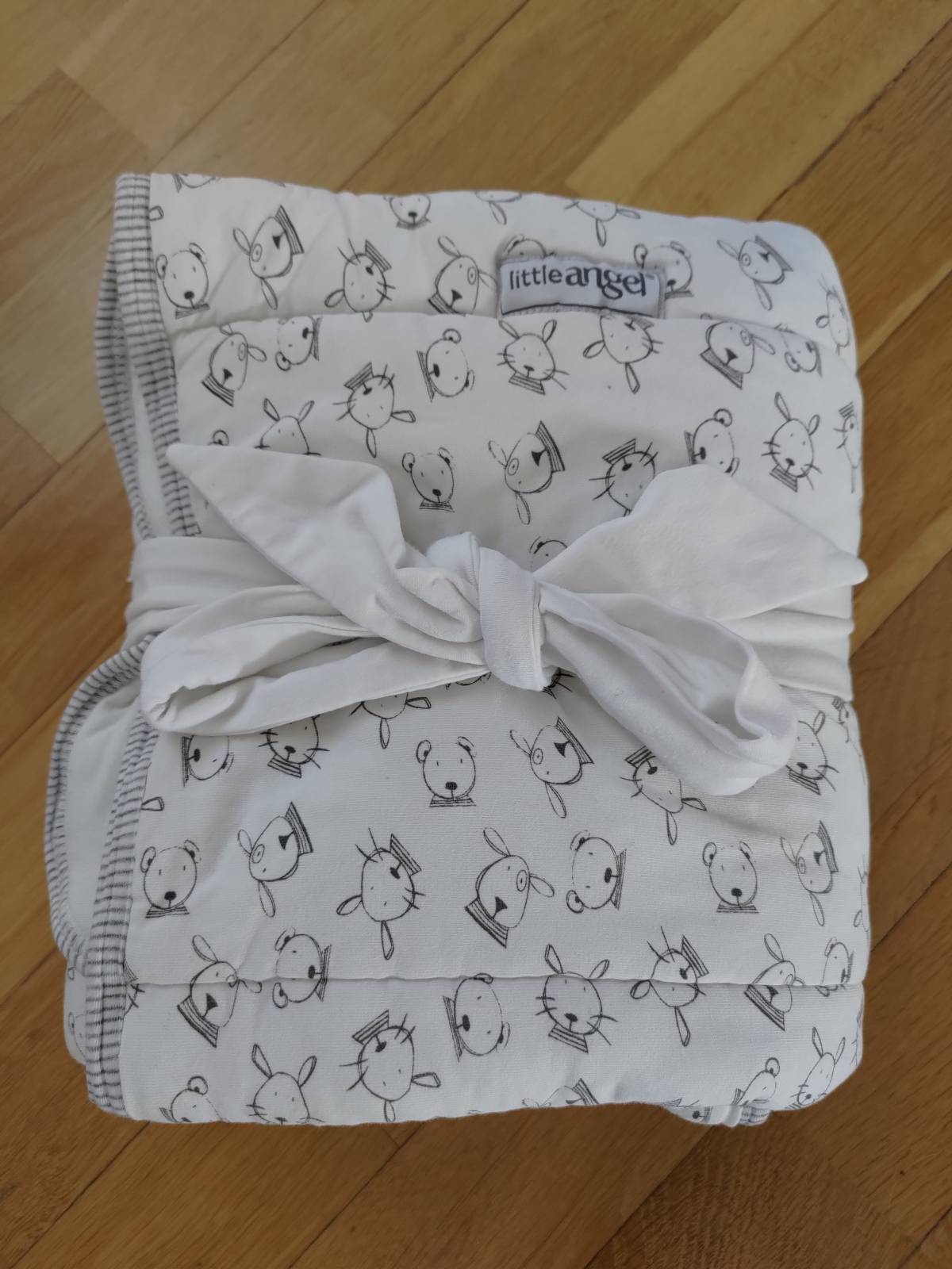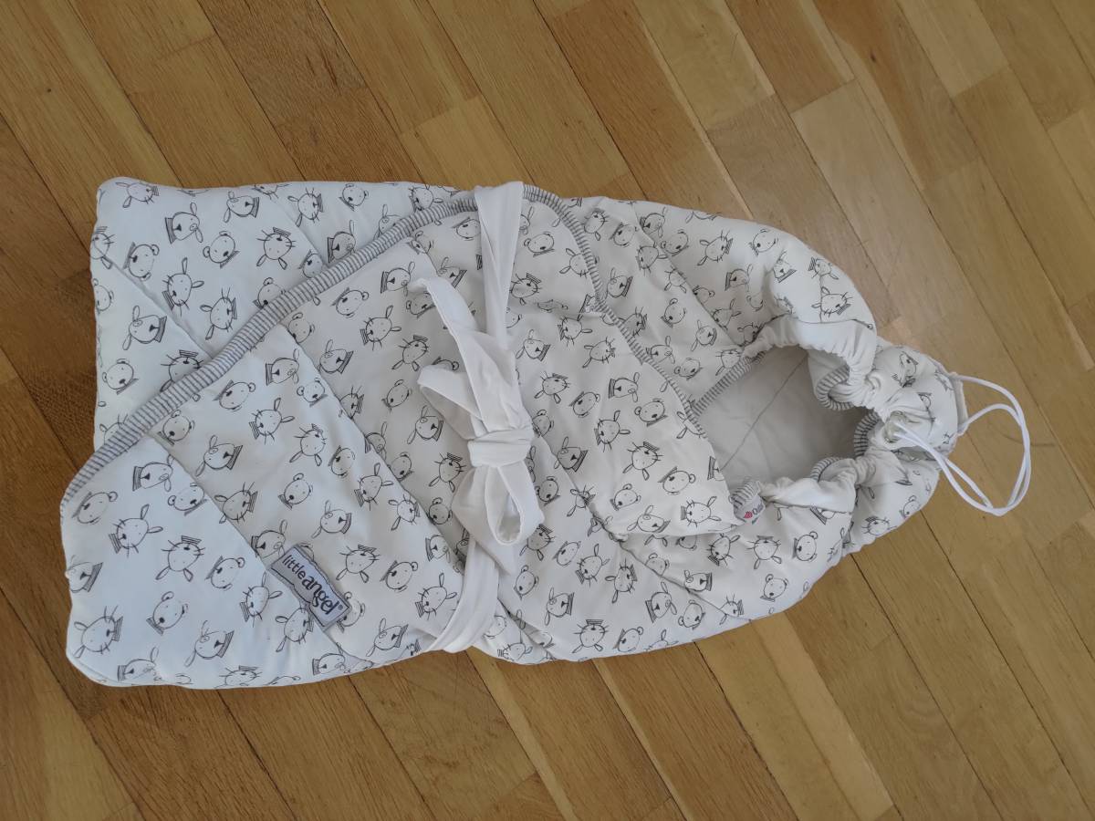 Zavinovačka s možností zatahování rohu, který vytvoří kapucku, zavazování na mašli. Použitá, ale krásně zachovaná