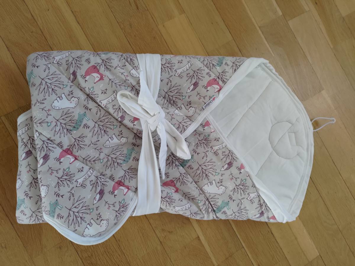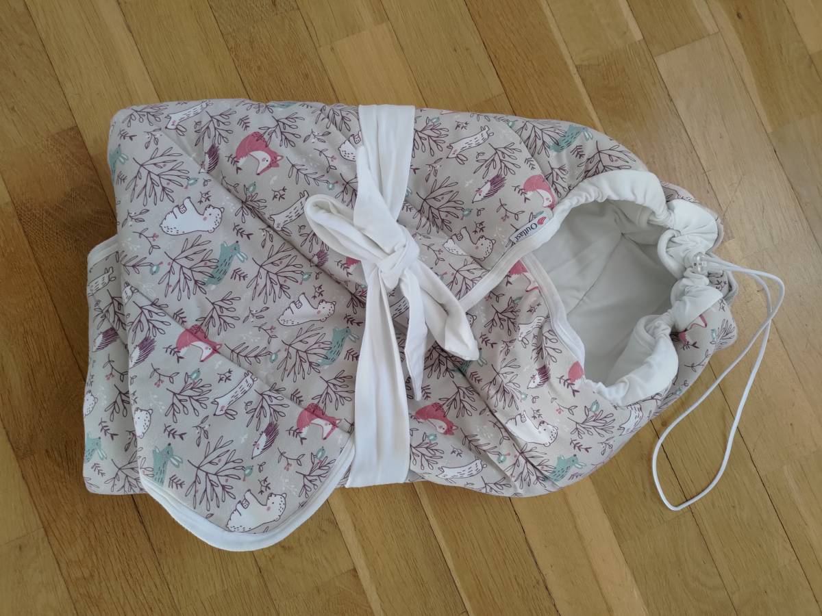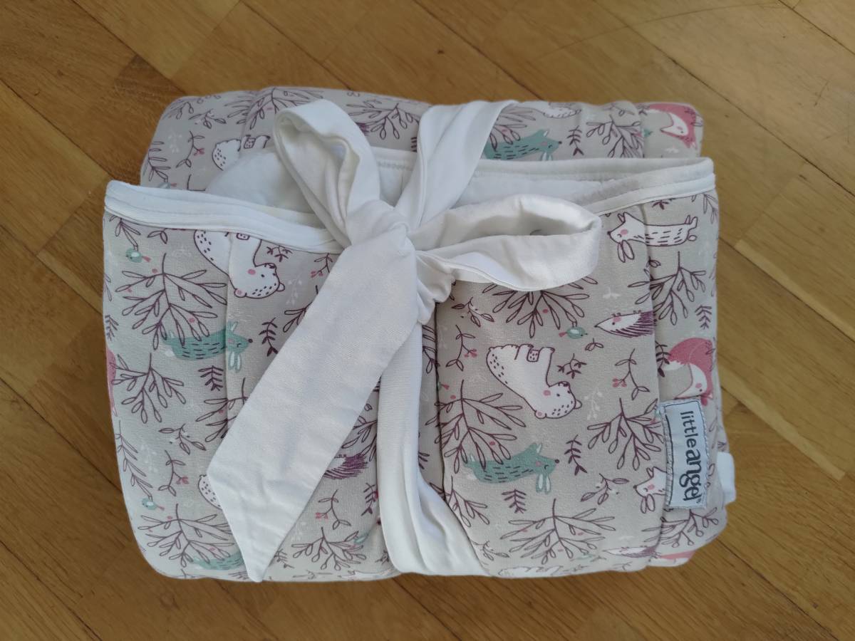 Zavinovačka se zatahováním, které v rohu vytvoří kapucku, použitá, ale jako nová, zavazování na mašli