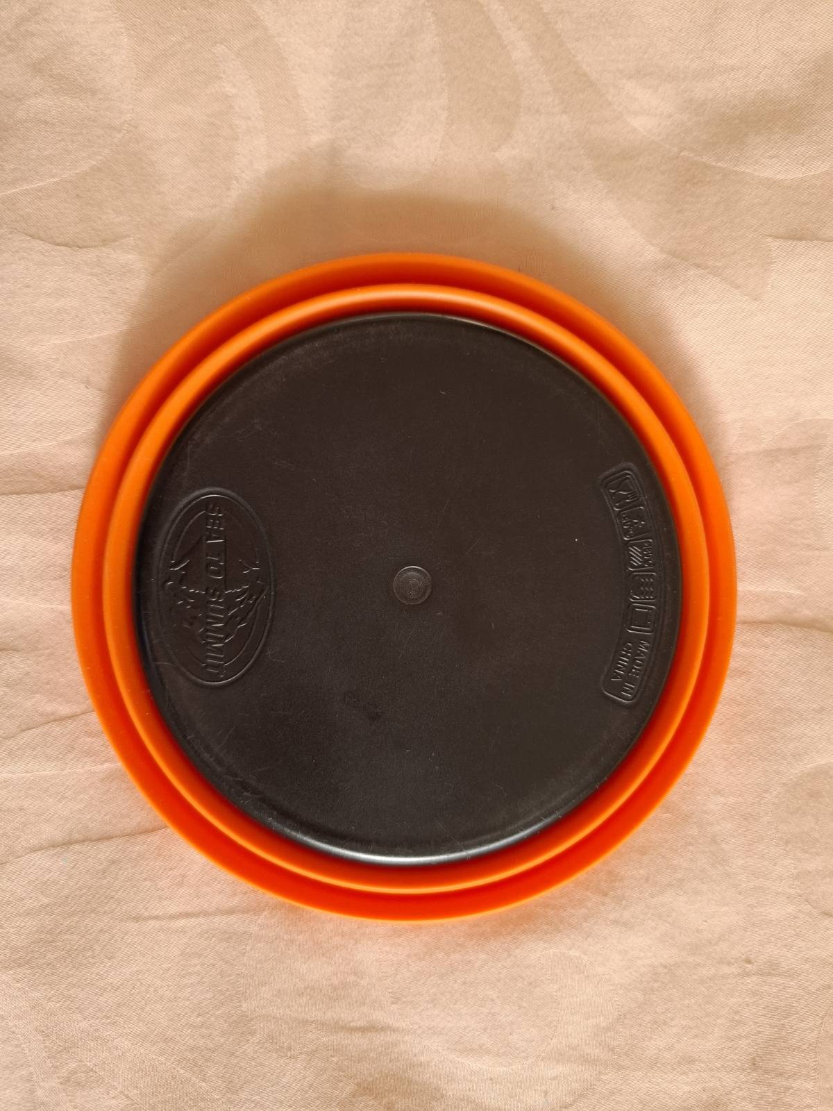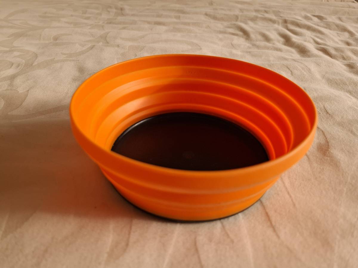 Daruji za odvoz skládací misku Sea to Summit s pevným plastovým dnem a silikonovými boky. Rozměry složené 15x1cn. Udaný objem 650ml, ale víc než 500ml není úplně praktické.