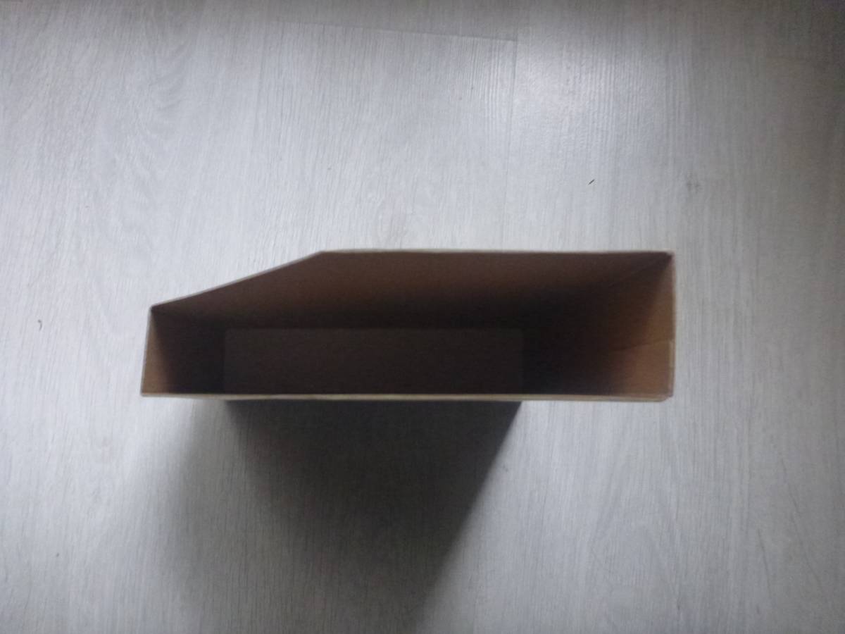 Daruji za odvoz složené papírové boxy, šířka dna 4,5 cm, na formát papíru A4, boxy jsou s potiskem, celkem 14 kusů. Foto při složení.