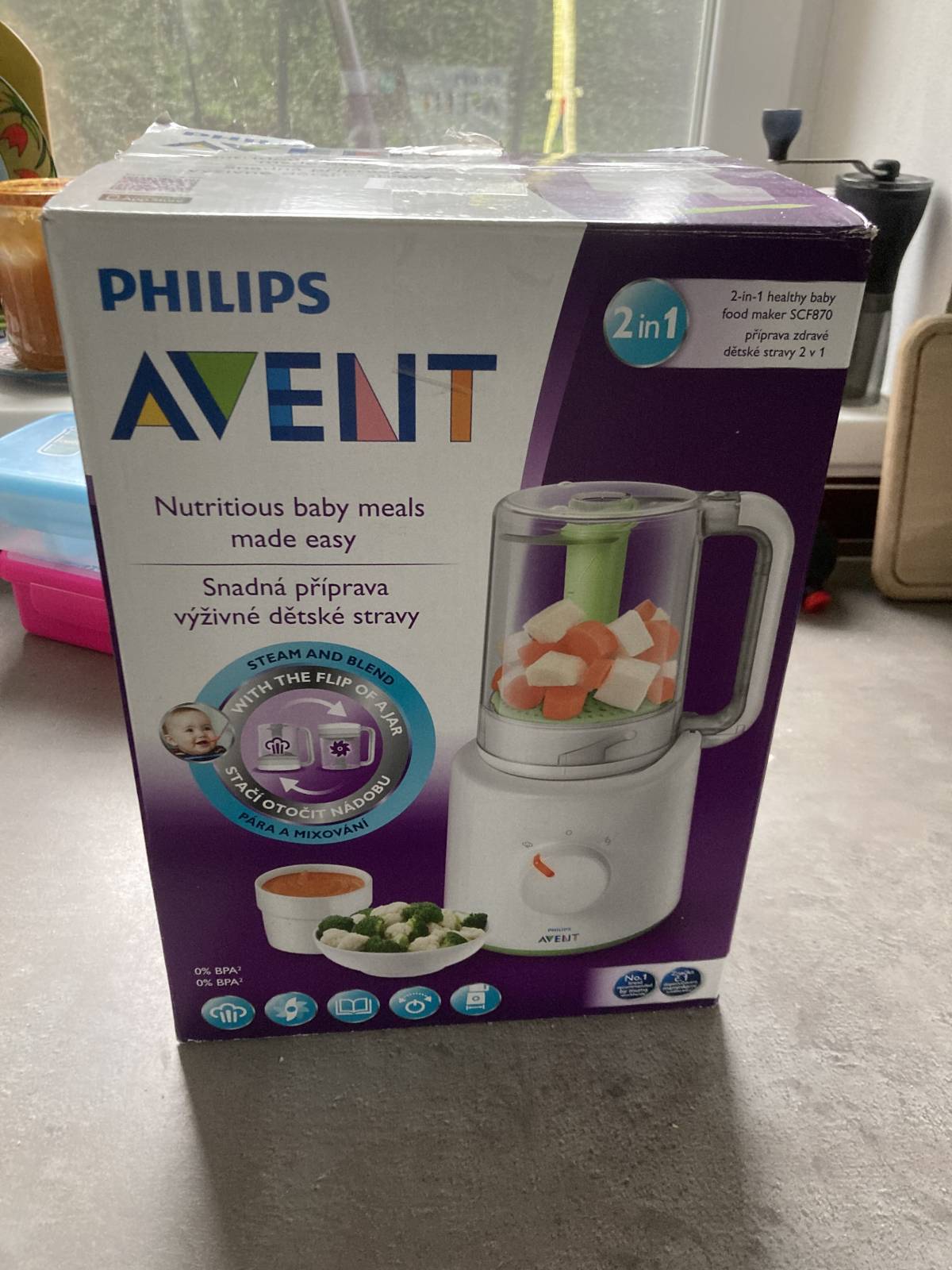 Daruji za odvoz použity parní hrnec Avent na přípravu příkrmu, po 2 dětech, vyčištěný, funguje, chybí v balení odměrka a mírně naprasklé víko, nemá na funkci vliv.
