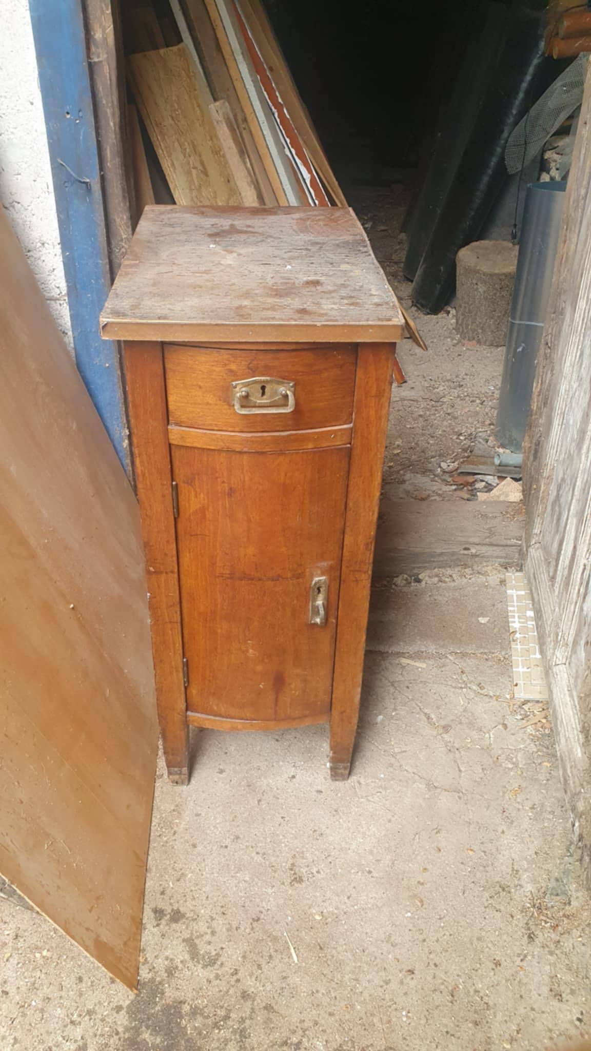 Daruji za odvoz krásný noční stolek . doporučuji zrenovovat opravdu by to stálo za to. vrchní deska má krapet zkřivenou dýhu. (doporučil bych vrchní desku vyměnit za mramor či jinou kamenou desku.) Korpus za renovaci opravdu stojí. Bydlíme v kopci. stolek přinesu k silnici. rozměry na foto.