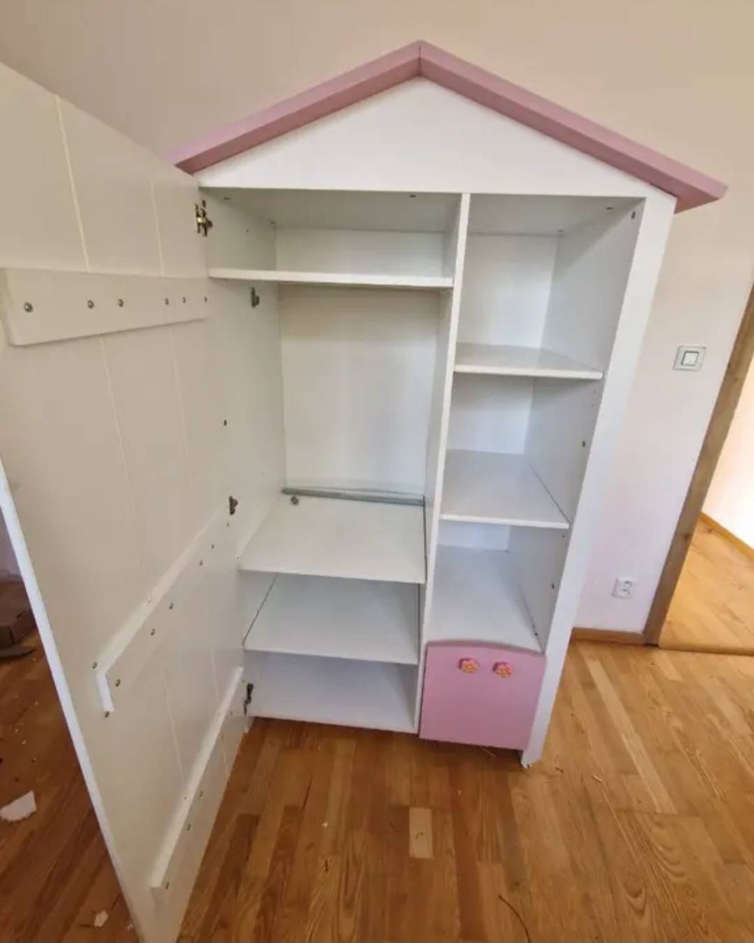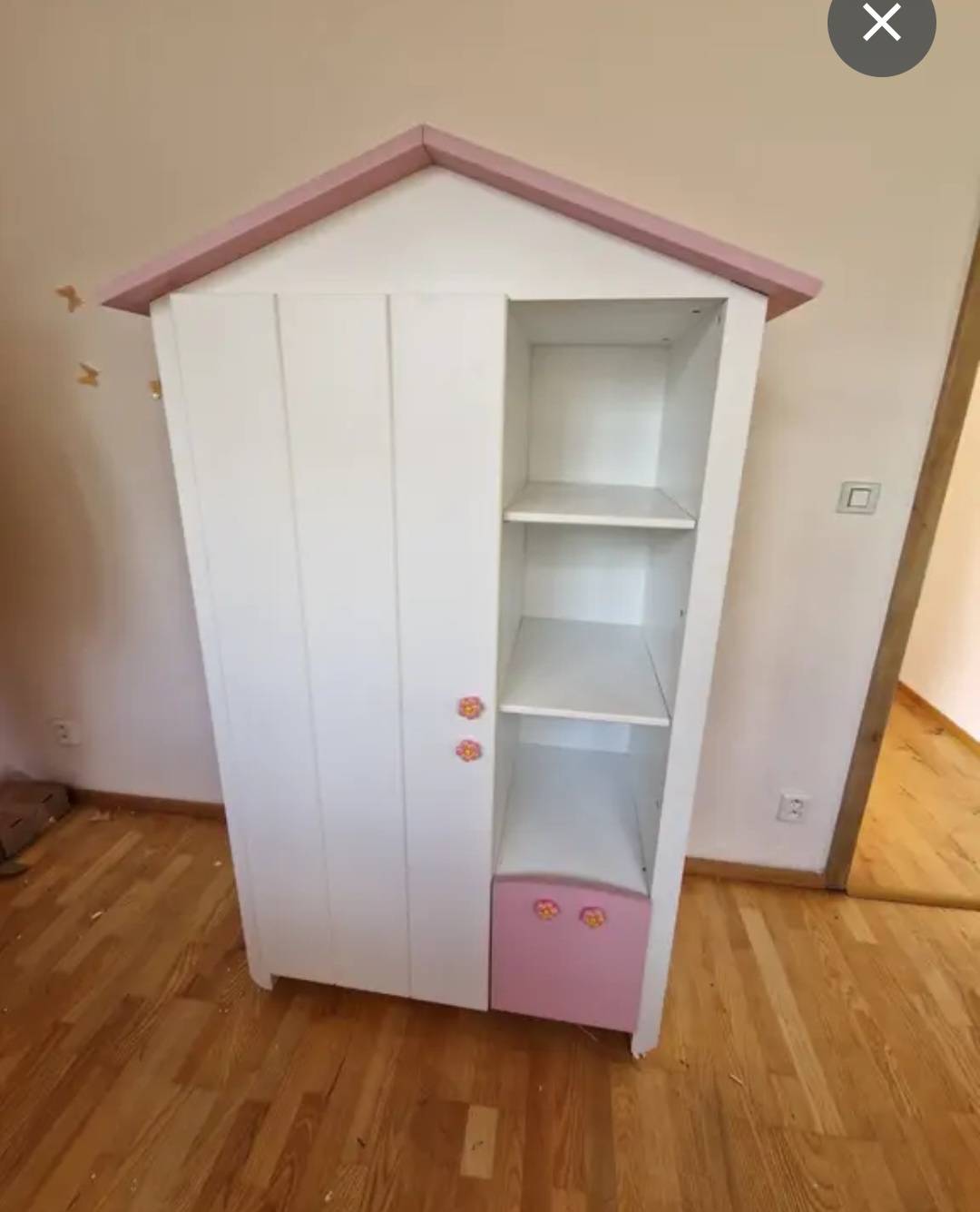 Daruji za odvoz Dětská šatní skříň minimálně používaná, skvělý stav. Žádné odřeniny. Jako nová. Uvnitř šatní tyč (jen se nasadí). Na míru jsme nechali přidělat praktické poličky. Druhá část otevřená s funkčním šuplíkem. Skříň je velmi dekorativní. Skříň lze prohlédnout i převést složenou.