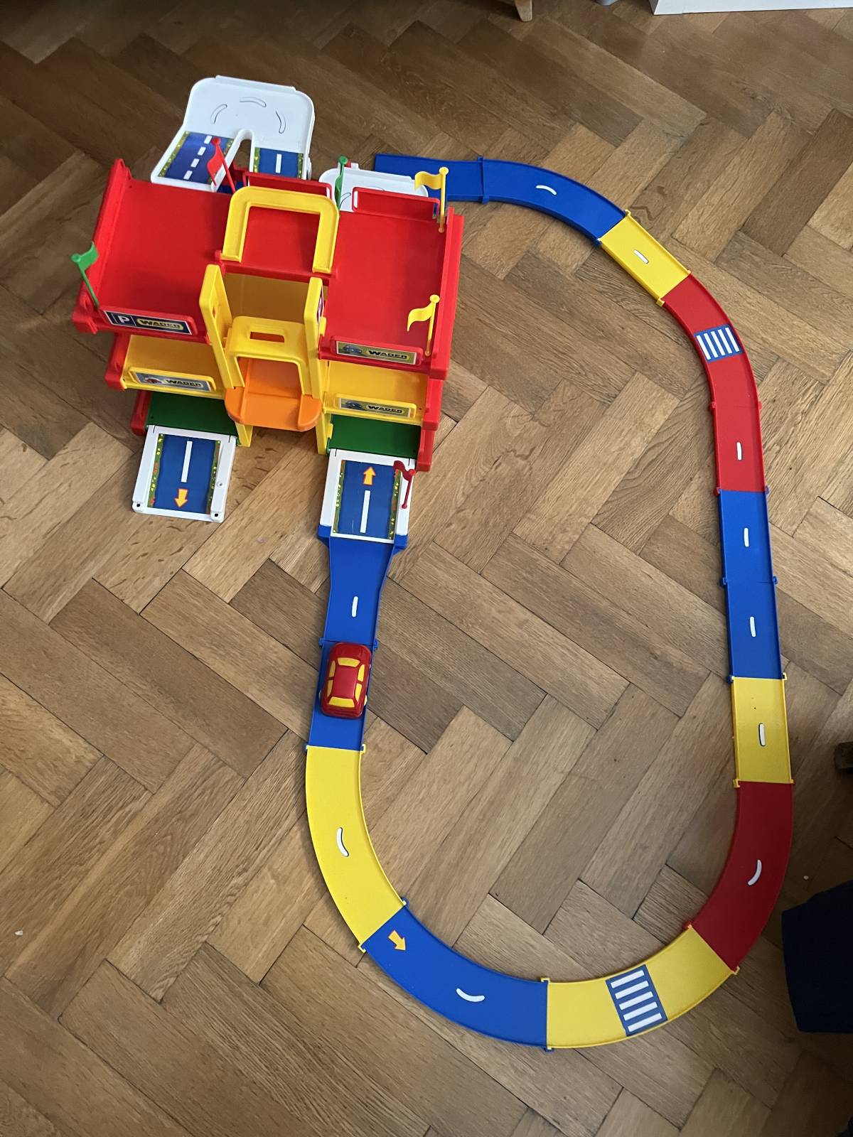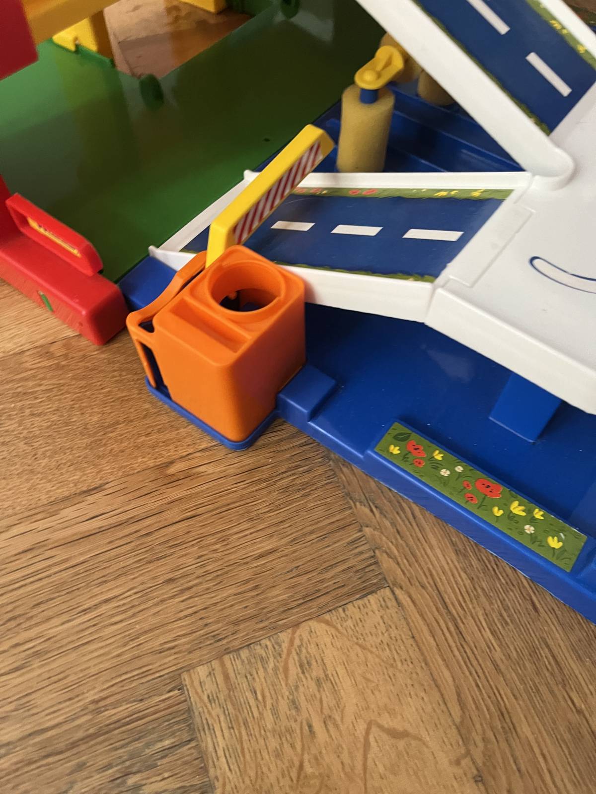 3-4 menší vady, které ale neovlivňují funkčnost hračky (největší je chybějící kousek na ovládání závory - viz foto)..