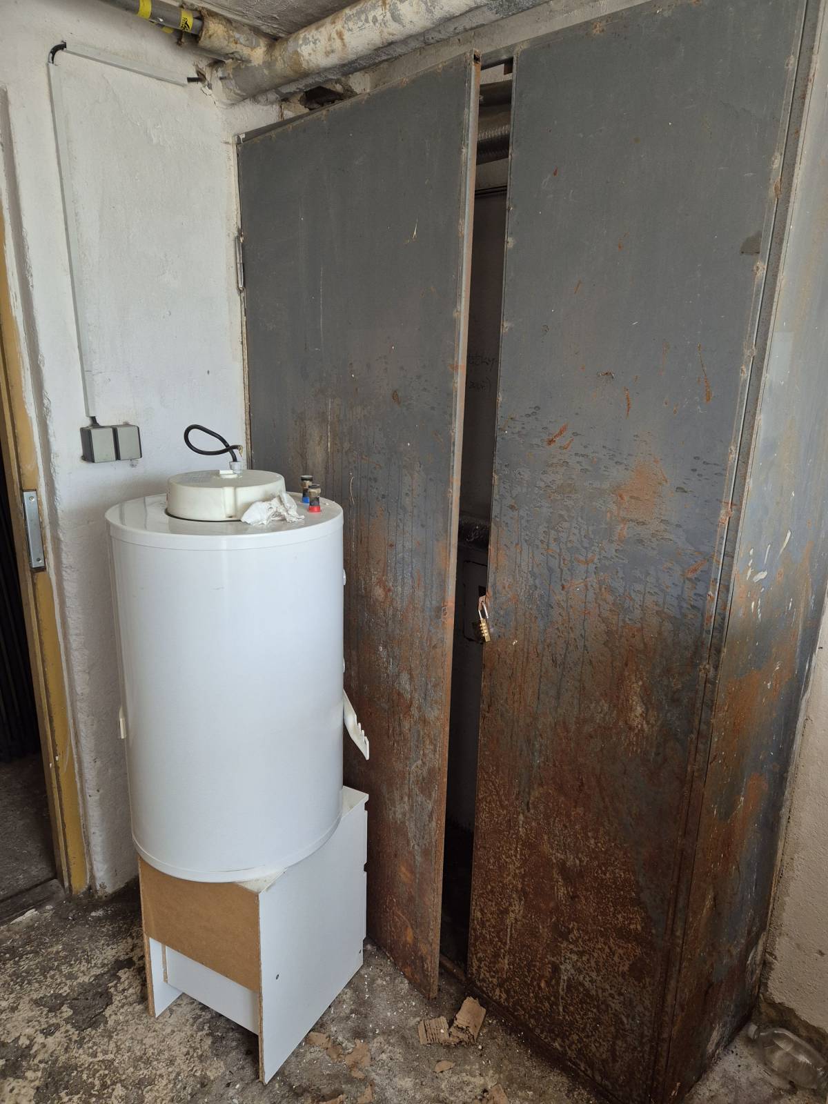 Daruji za odvoz železnou skříň. Výška 205, šířka 141, hloubka 45. Vhodná pro umístění do rohu, protože nemá zadní stěnu. Vepředu petlice na zámek. Povrchová koroze. Osobní odběr Praha Košíře.