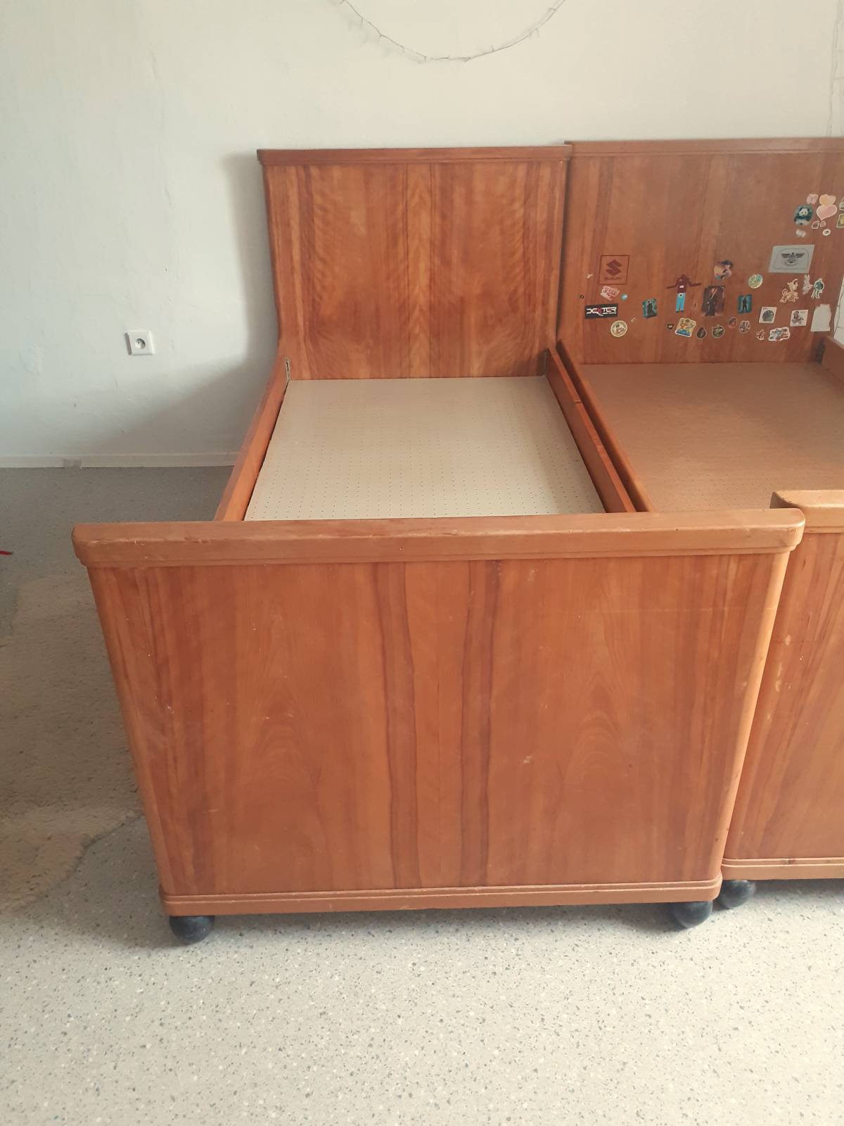 Druhá postel (se samolepkami) je v samostatném inzerátu. V případě zájmu o obě dvě prosím dejte zájem na obě. Postele jsou stejného typu, původně vyrobené jako manželská postel, ale uprostřed vznikne nepříjemný rantl.