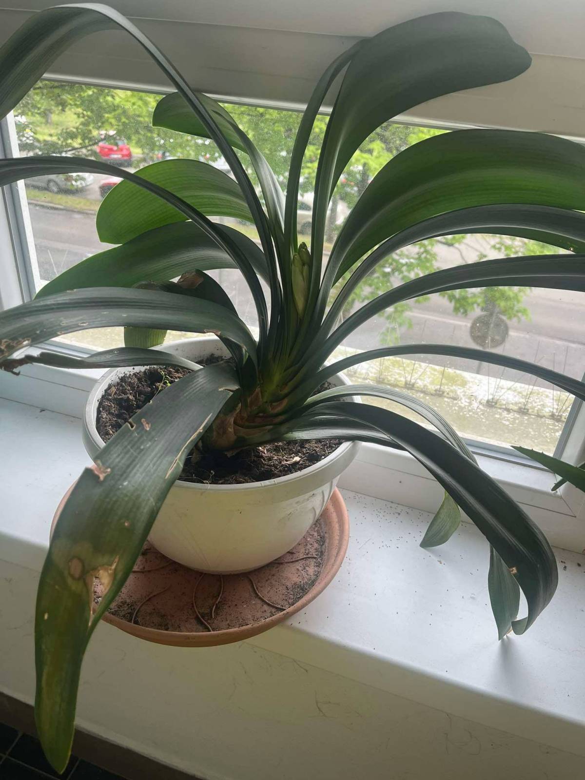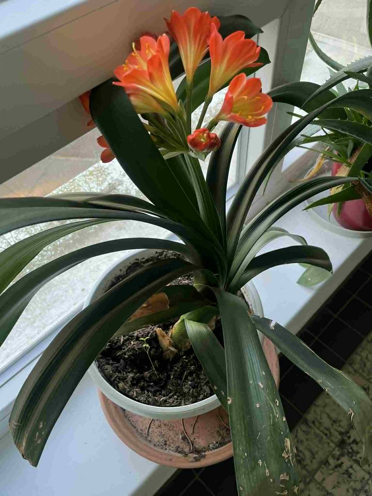 Daruji za odvoz středně velkou rostlinu klívii, právě odkvetla (červen). Kvete velkými červenooranžovými květy 1 - 2x do roka.