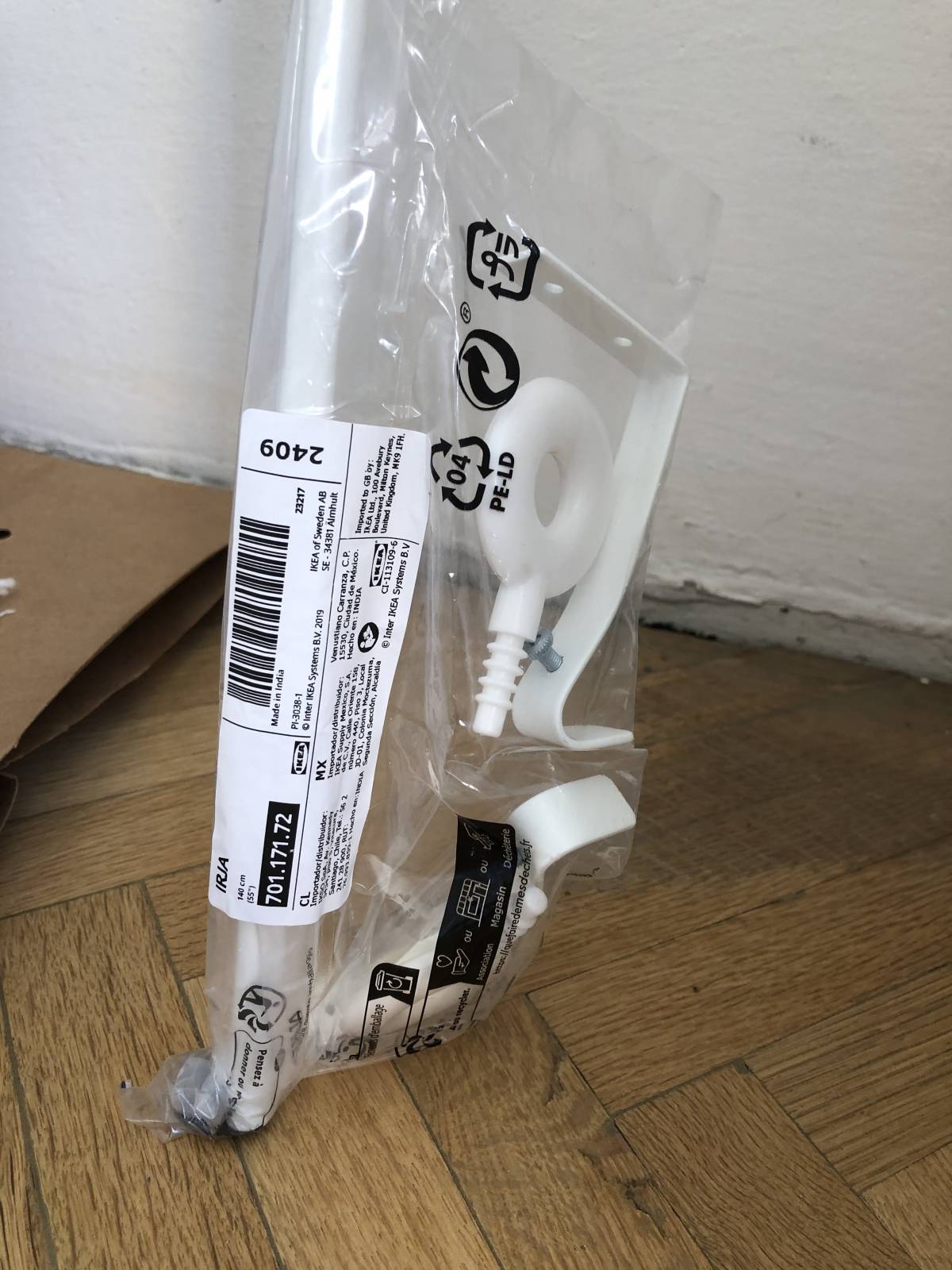 Daruji nerozbalenou tyč na závěs včetně koncovek a háků na zeď. Maximální délka 140 cm.