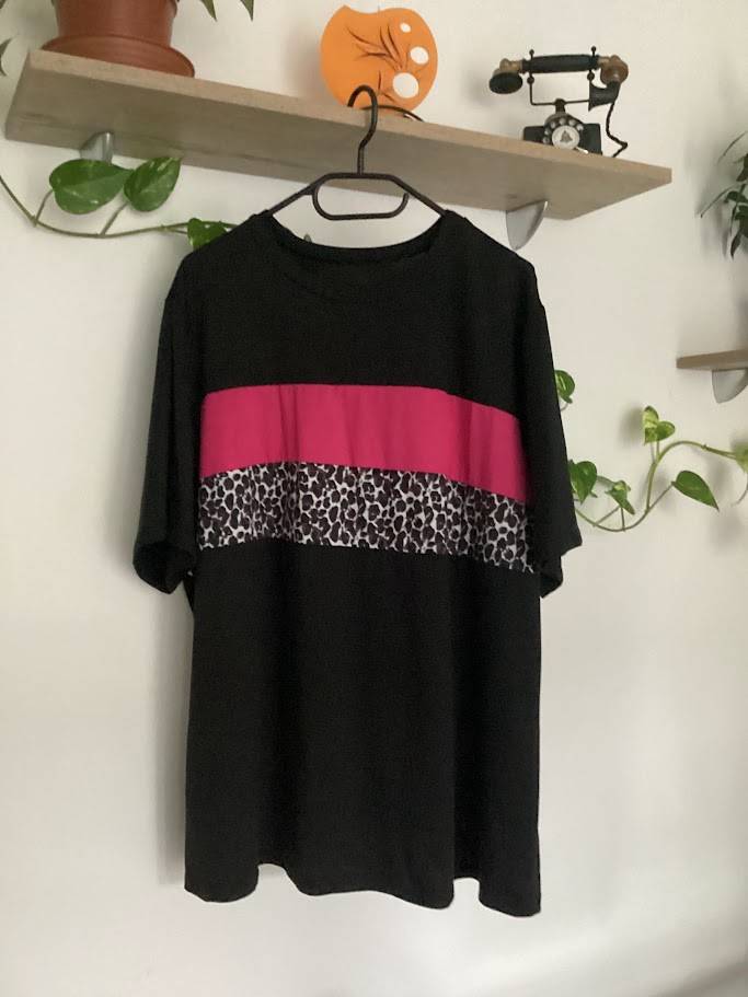 Daruji za odvoz tričko černé + růžový + leopardí potisk, vel. 3XL/50, málo nošené. Rozměry : délka: 73 cm, hrudník: 130 cm