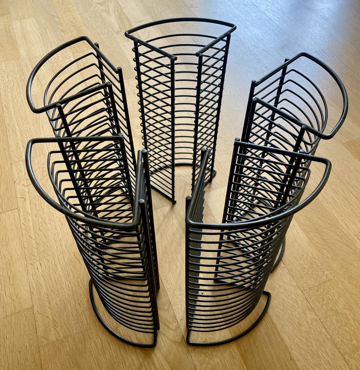 Daruji 5 ks kovových stojanů na cd, kapacita 20 cd každý. Cédéčka už nikdo moc nekupujeme, ale třeba to někdo využije nějakým kreativním způsobem.